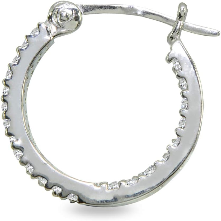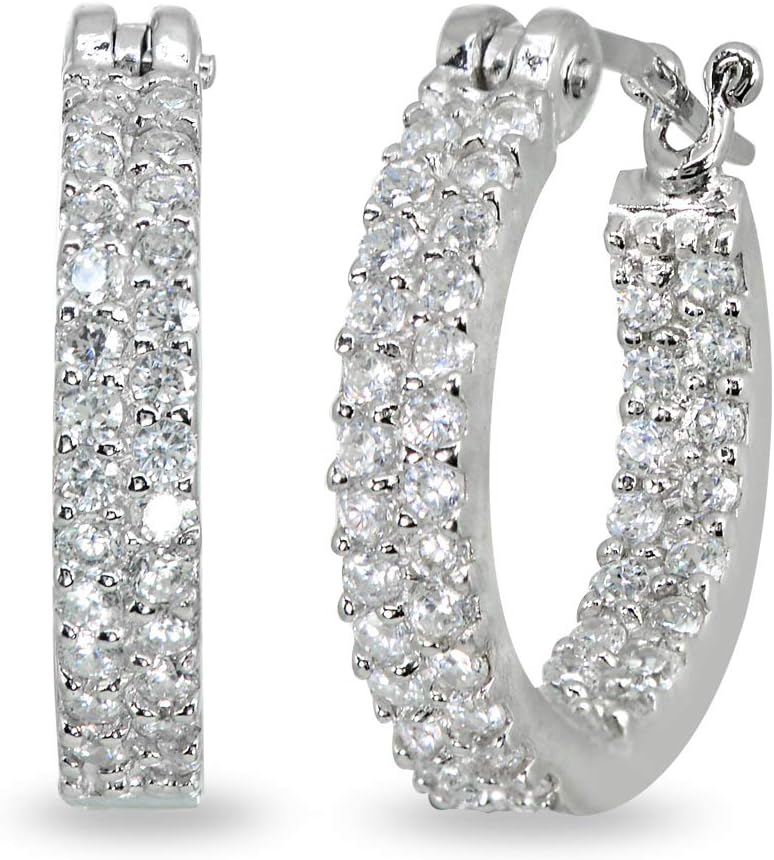 Sterling Silver 3mm Inside Out Two Row Cubic Zirconia Round Hoop Earrings, Options Available