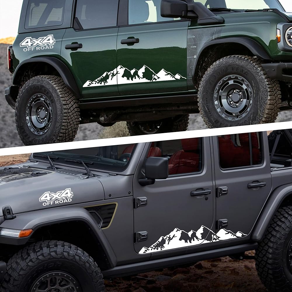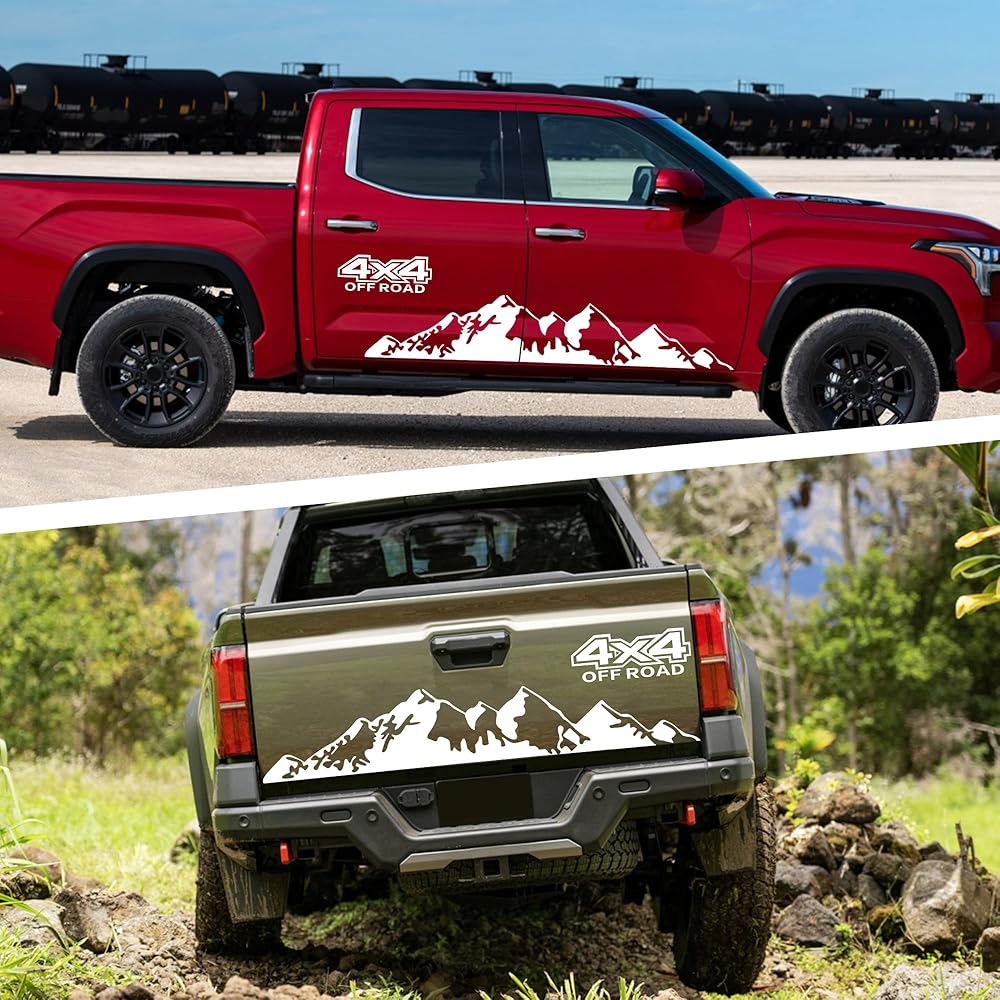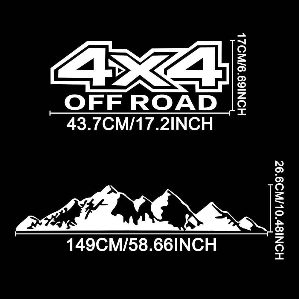 TOMALL 58.6'' 4X4 Mountains Vinyl Stickers Decal for Car Trunk Body Door Side Auto Snow Mountains Graphic Decal Decoration for Pickup SUV Truck Off-Road Vehicles Universal Stickers Accessories (White)