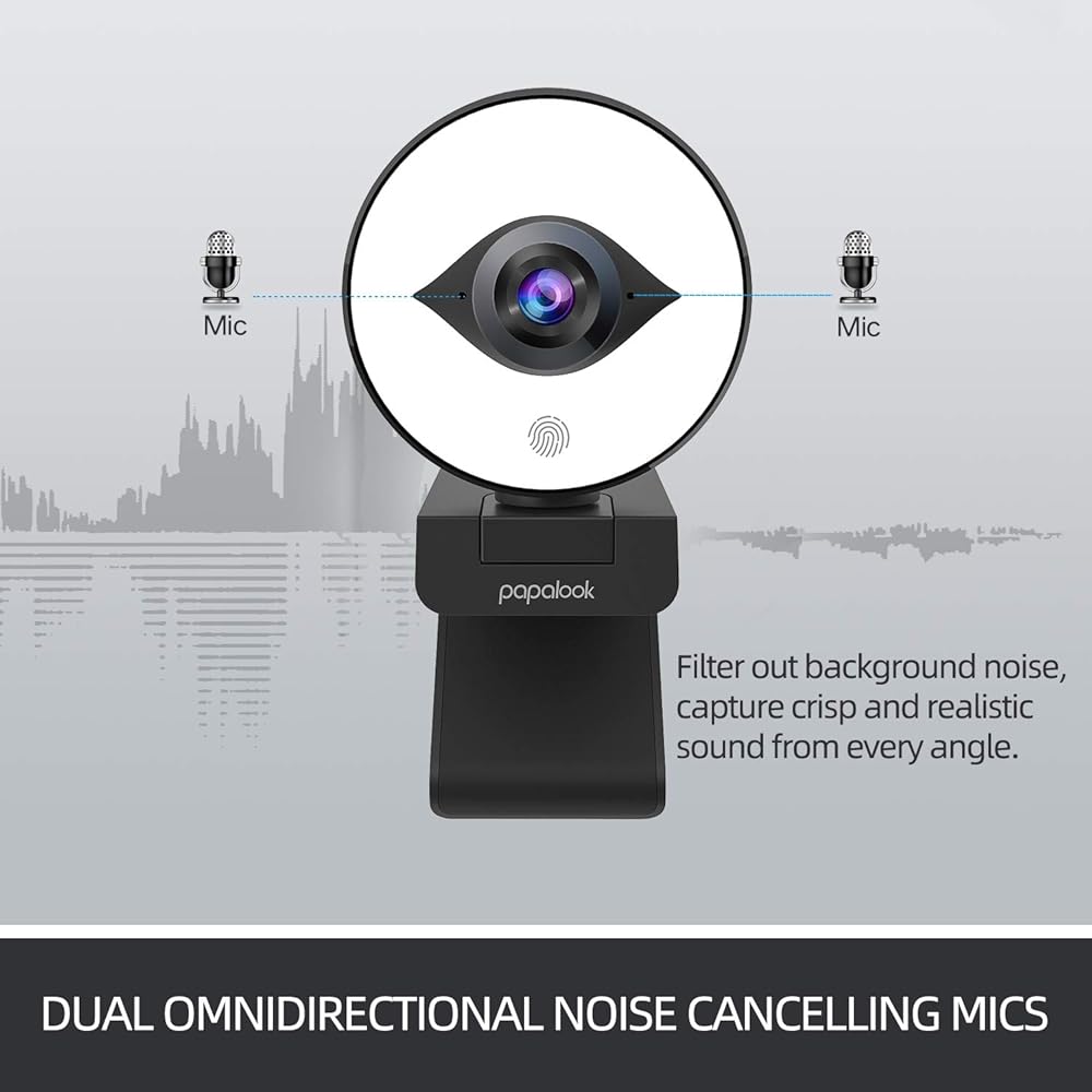 papalook 60FPS 1080P Webcam with Ring Light, Auto-Focus with Tripod, PA552 Pro Full HD Streaming Web Camera with Dual Microphones, Plug and Play for PC Mac Laptop Desktop Computer Online Conference