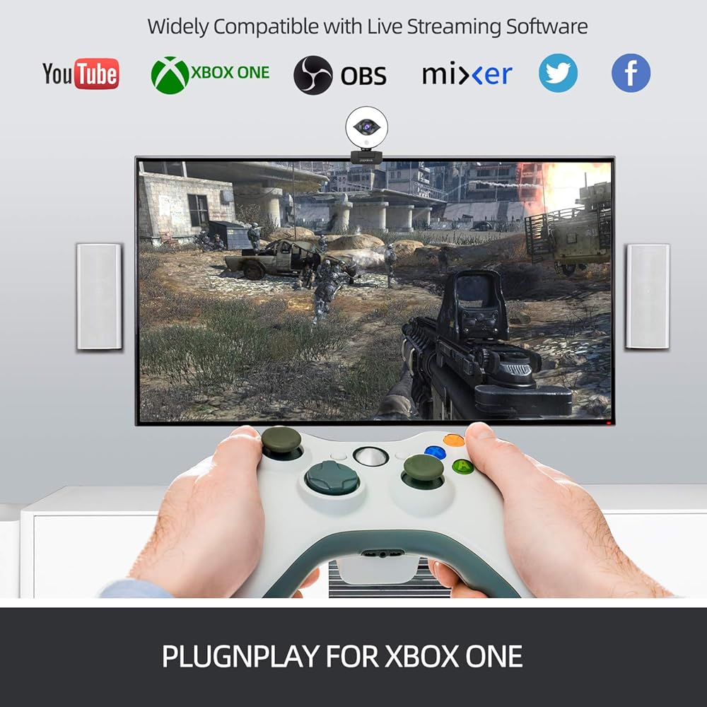 【USB Plug and play & Wide Compatibility】The webcam with microphone supports USB plug and play, easy to use, no other driver or software need to download. The web camera also supports live streaming on social gaming & entertainment sites, such as Twitch, Zoom, Skype, Youtube, Xbox one, Xsplit, Mixe, Facebook, Vlogging, OBS, and universally compatible with Windows, Mac OS, Linux, Chrome, Ubuntu and so on.