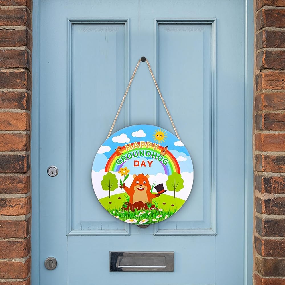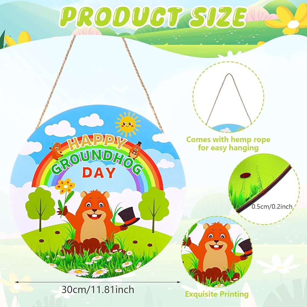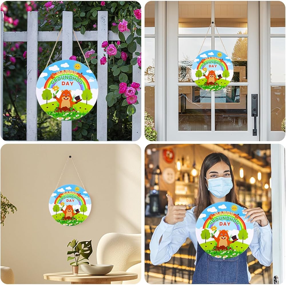 • Proper Size: Wood groundhog porch sign approx 11.8"×11.8"(30cm×30cm),thickness 0.2 inches. The sign text and printing are large enough and clear. You can even hang it on the doorknob and decorate your home