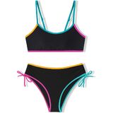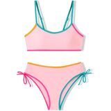 Design features: The girls' bikini swimsuit tops use adjustable straps to find the most suitable length position, the belt also uses a rope design, easily adjusted to the most suitable for their waist size, the overall use of rose powder color block design, can well set off the wearer's skin color, giving a warm and energetic feeling.Suitable for girls who like sweet style