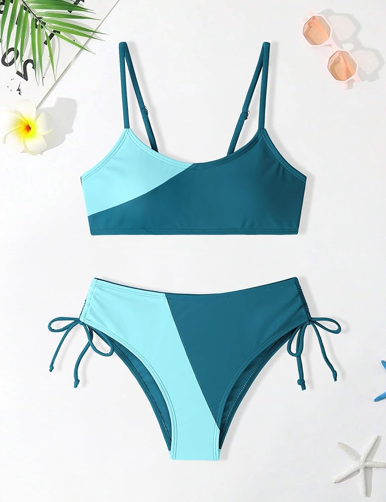Package:The girls swimsuits Includes two pieces .You will get one bikini top and one bikini bottoms.Please refer to the size chart on the detailed page carefully before ordering.