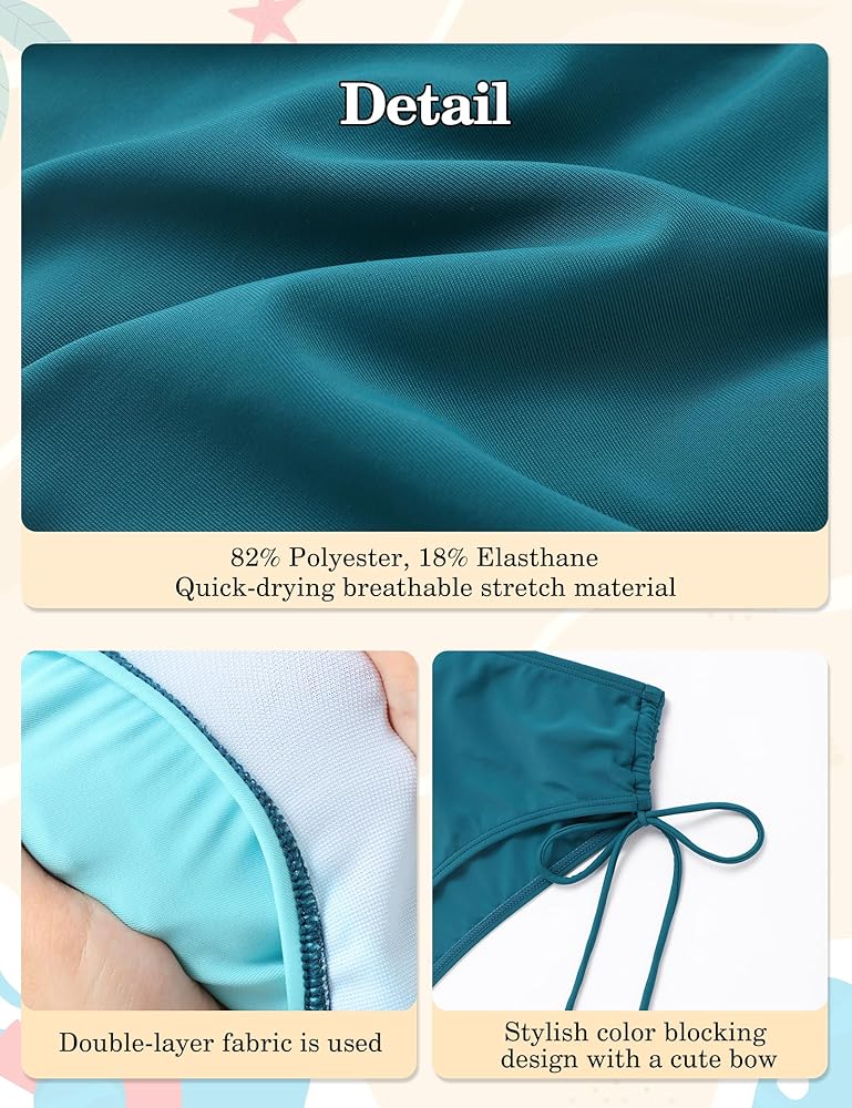 Comfortable fabric:Our girls swimsuits is made of quick-drying material, skin-friendly and breathable, full of elasticity, and the top comes with a breast pad design to better protect the privacy of girls