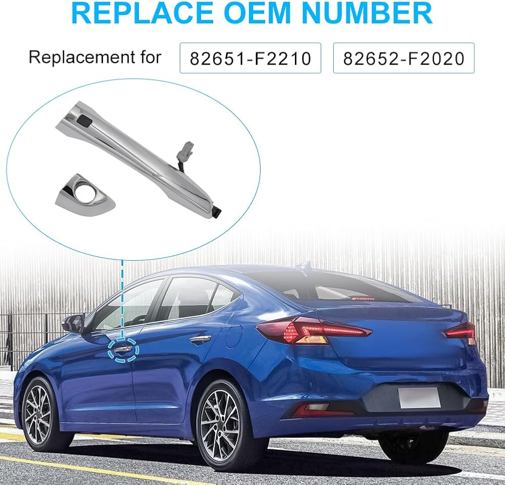 JDMON Exterior Chrome Door Handle Replacement for Hyundai Elantra 2017 2018 2019 2020 Replacement for 82651-F2210 82652-F2020 Front Left Driver Side Outer Outside Handle w/Smart Entry