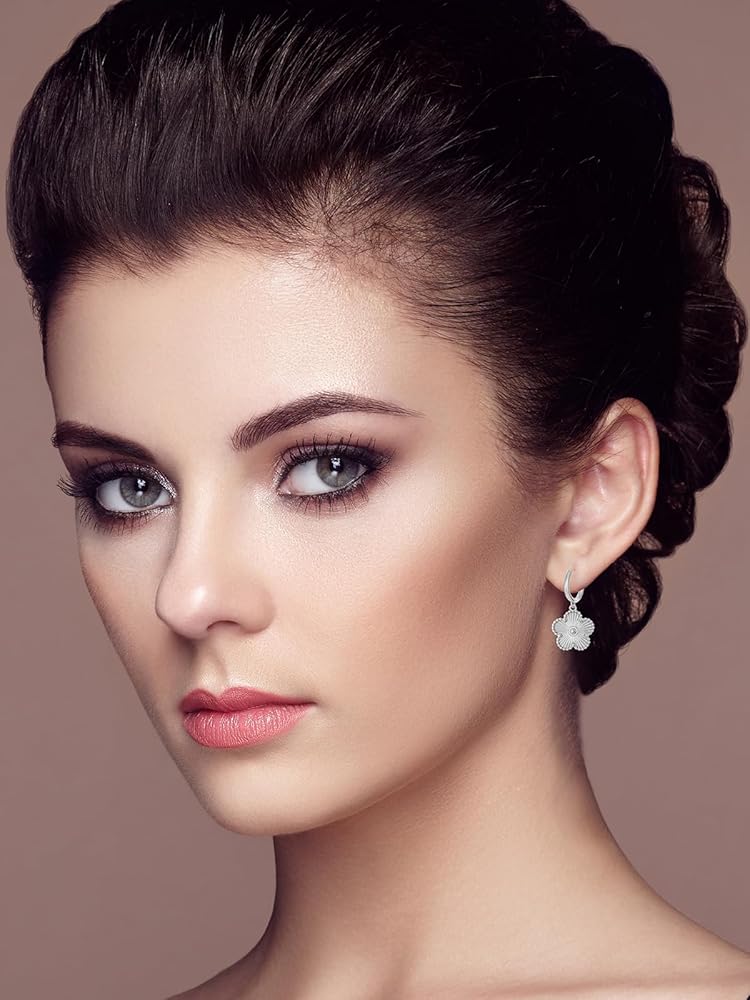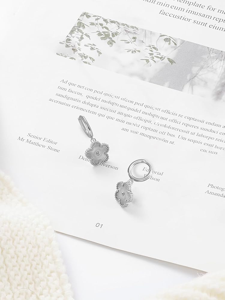 A Five Leaf Clover Dangle Earring. These Luck Flower Dangly Jewelry Leverback Earrings Measure 1.18" High 0.51" Wide. The Weight of These Pierced Dangling Earrings is 4.6g. These Formal Stud Earrings Feature a 11*11mm AAA+ Chalcedony. Hypoallergenic and Nickel free. Gorgeous for Bridesmaids, Prom, Homecoming, Mothers of Bride and Special Occasions; Great for Jazzing Up Causal Attire as Well.