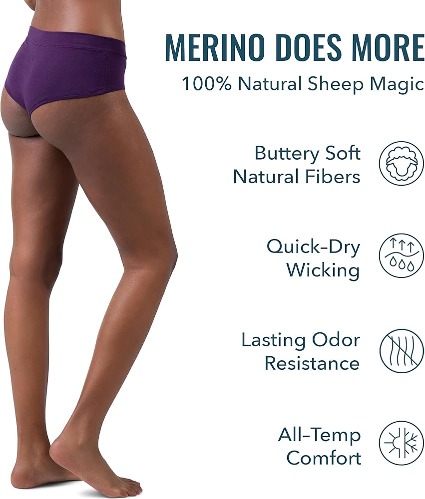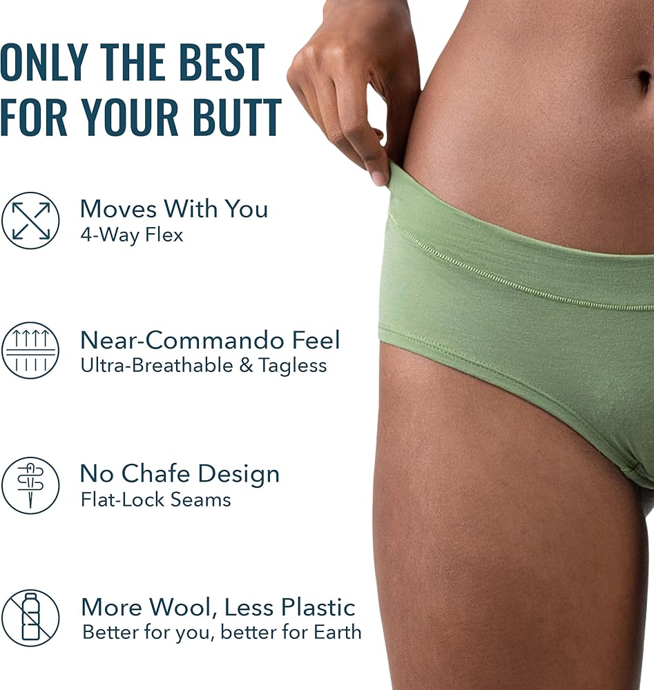 Classic Cheeky cut underwear in Woolly's Ultralight, super fine merino. Designed to maximize comfort and versatility so you can enjoy the luxury of merino in every situation. --------------------- Great For: Hiking, work, the gym, or the farmer's market. These are good to for any situation you can throw at them. --------------------- Comfort Features: Flatlock seams, tagless interior, soft elastic jacquard. Merino / elastane construction for extra stretch, odor resistance, moisture wicking, itch free, 4-season comfort. Layer: Next To Skin Fit: Modern Fabric Specs: 95% 17.5 micron merino wool, 5% elastane. 150 GSM Ultralight Weight Model Specs: 5'9'' // 25'' waist // 35'' hips. Wearing size small.
