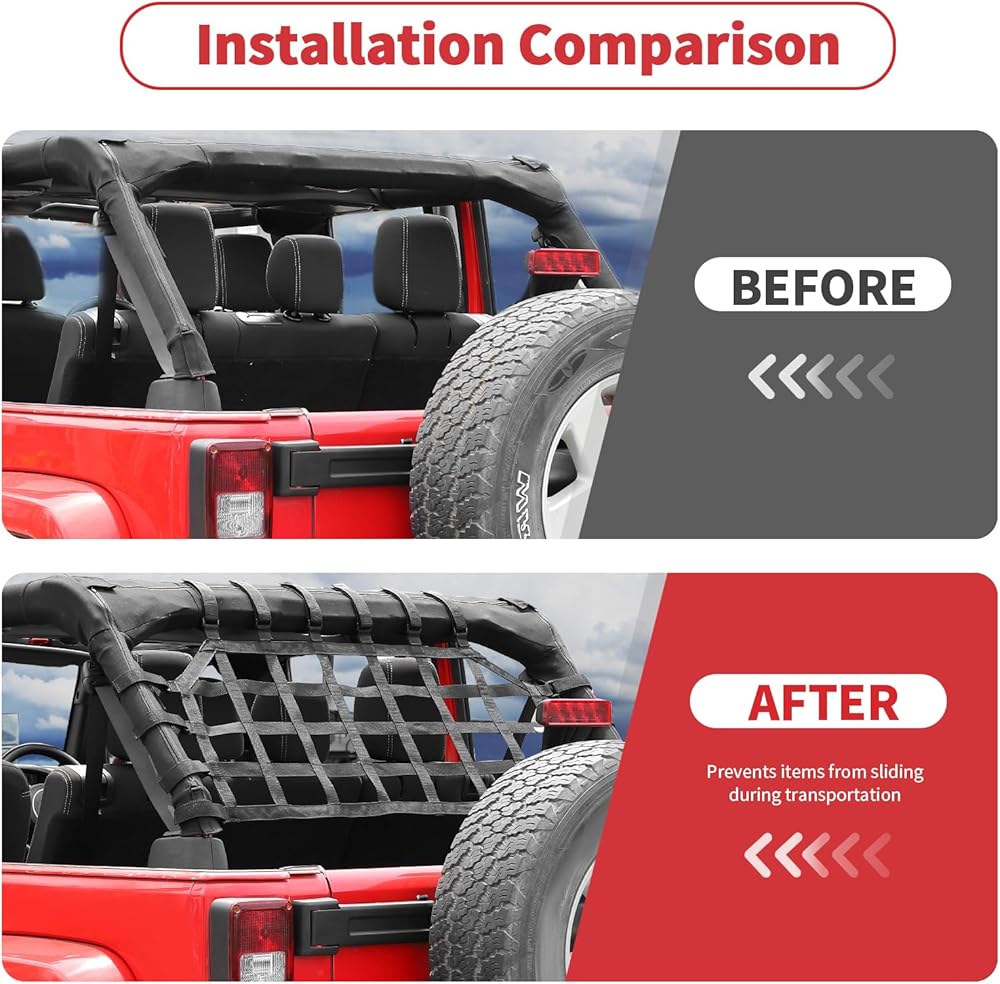 - 🚘Usage: Black, Fit for 2007-2017 Jeep Wrangler JK JKU 4Door, Cargo Net, Trunk Divider Net, Trunk.
