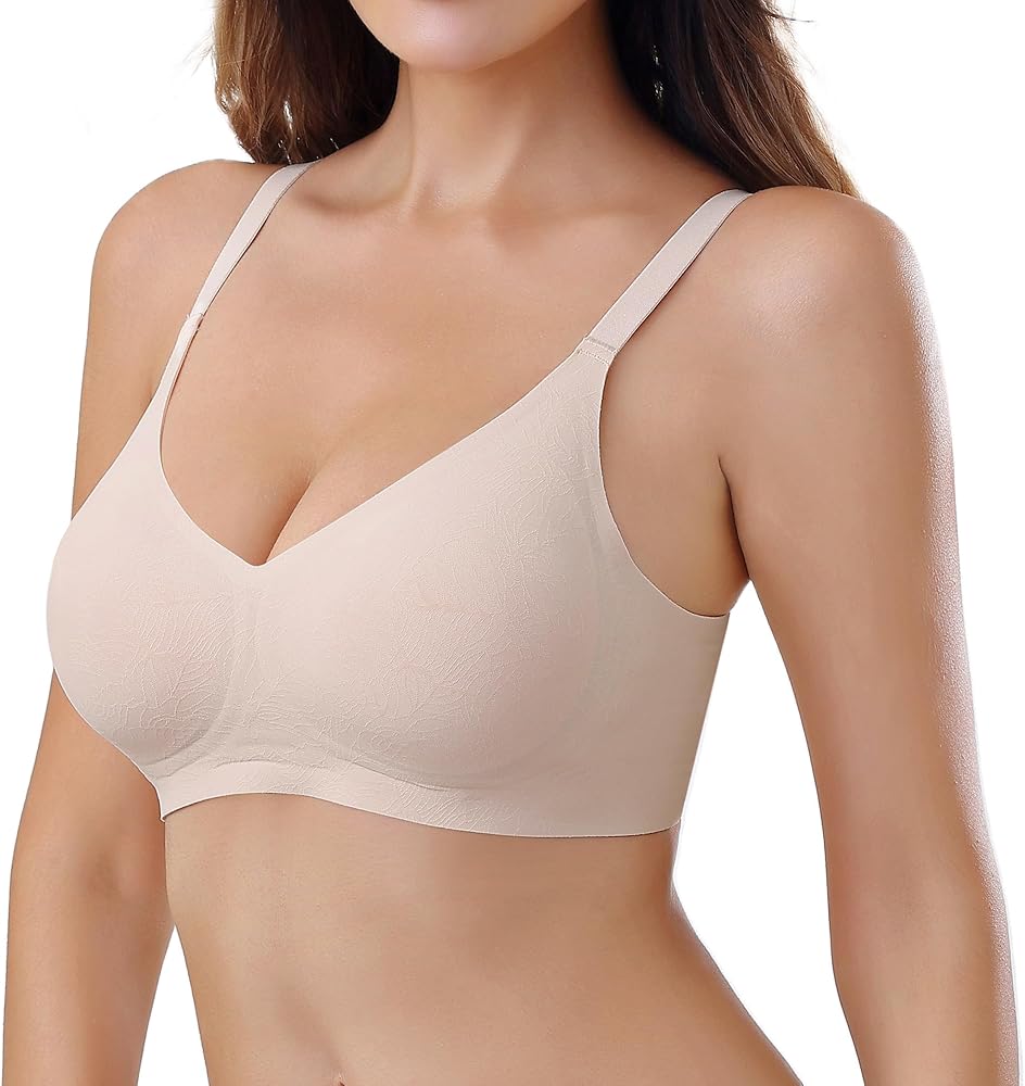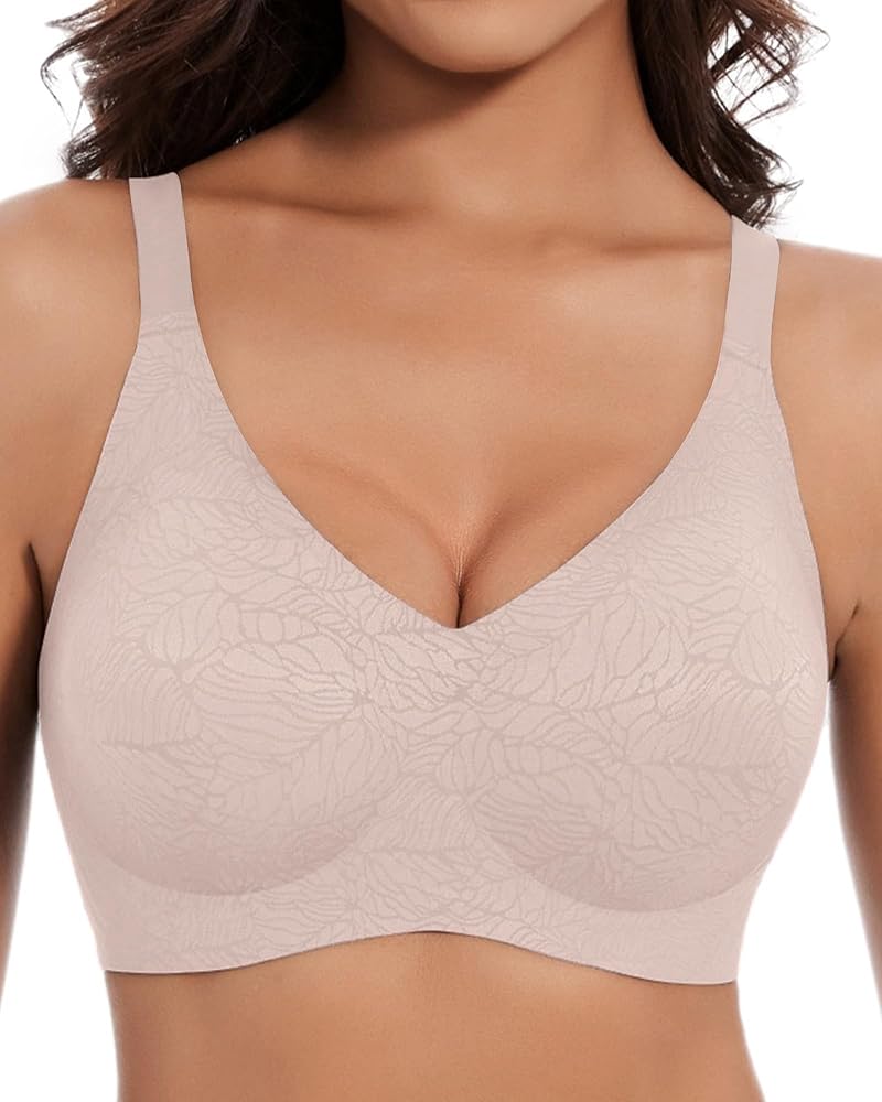 【FULL COVERAGE BRA】Our plunge bra adopts "w" type "jelly strip" support, 360°support your breasts, thin and non-marking non-binding. These everyday bras for women with support use a new "jelly strip" bonding craft to give a seamless appearance with smooth lines,3d molded cups, and a smoothing hide-back fat bra. No wire bras for women your breasts have a nice full and clustered curve in comfort.