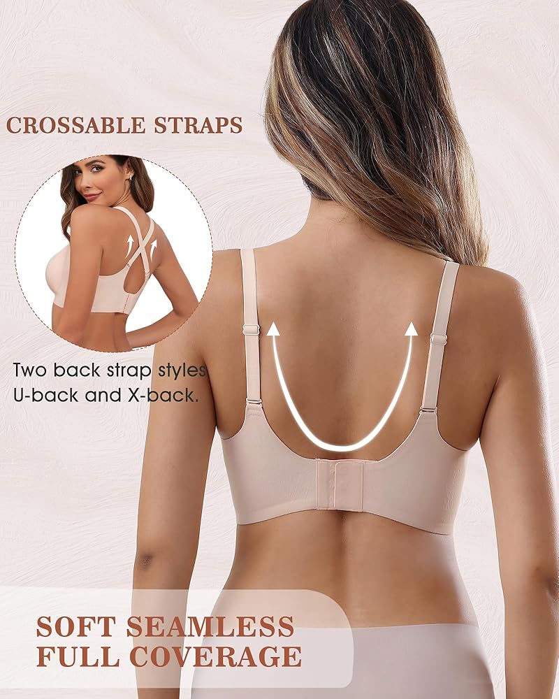 【U SHAPED & X SHAPED CROSSOVER BACK BRA】This bralettes for women features easily adjustable shoulder straps that don't slip off,relieving pressure on your shoulders without feeling tight. This wirefree bras features 4 rows of 3 buckles can adjust to fits most types of bodies. The sides of the bra are widened to cover the fat and make the breasts more concentrated and push up. U-shaped back design and crossover back design offer a unique and stylish look.