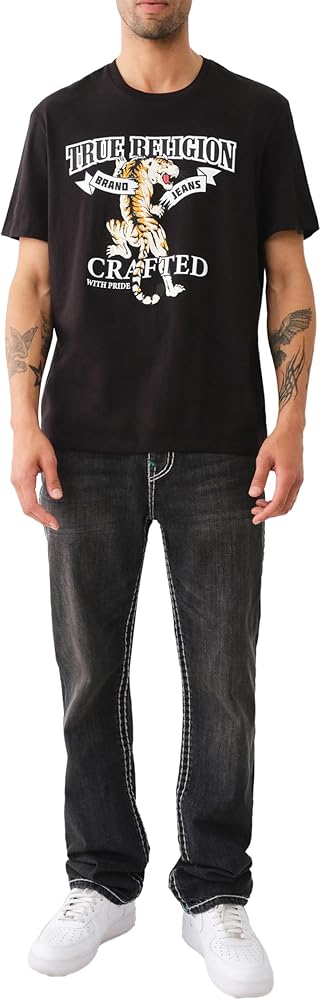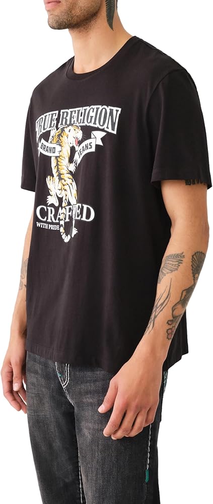 The True Religion Men's Relaxed Tiger Tee in Jet Black is a standout piece that effortlessly merges comfort and unique style. Crafted from premium materials, this tee provides a soft and comfortable fit. The Jet Black color adds a sleek and versatile touch, while the relaxed silhouette ensures ease of movement. The bold tiger graphic detailing adds a distinctive and fierce element to the tee, making it an ideal choice for those who appreciate both comfort and a bold fashion statement.