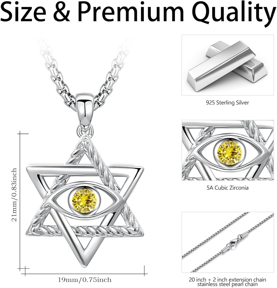【Evil Eye Birthstone Necklace】: Evil eye pendant size: 21mm(0.83inches)*19mm(0.75inches). 20inches rolo chain with lobster clasps(20in plus 2in adjustable extender), jewelry box with CUOKA MIRACLE logo,and silver jewelry Polishing Cloth.