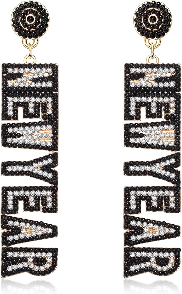 Super cute and fun New Year statement earrings will ring in the good vibes for 2024,while bursts of New Year theme color in our jewelry collection are sure to set a bright tone for the year.These pretty 2025 beaded drop earrings will make it a meaningful gift to your loved ones,like lover,girlfriend,wife,mother,daughter,sister,fiancee,mother in law,friends or even yourself.