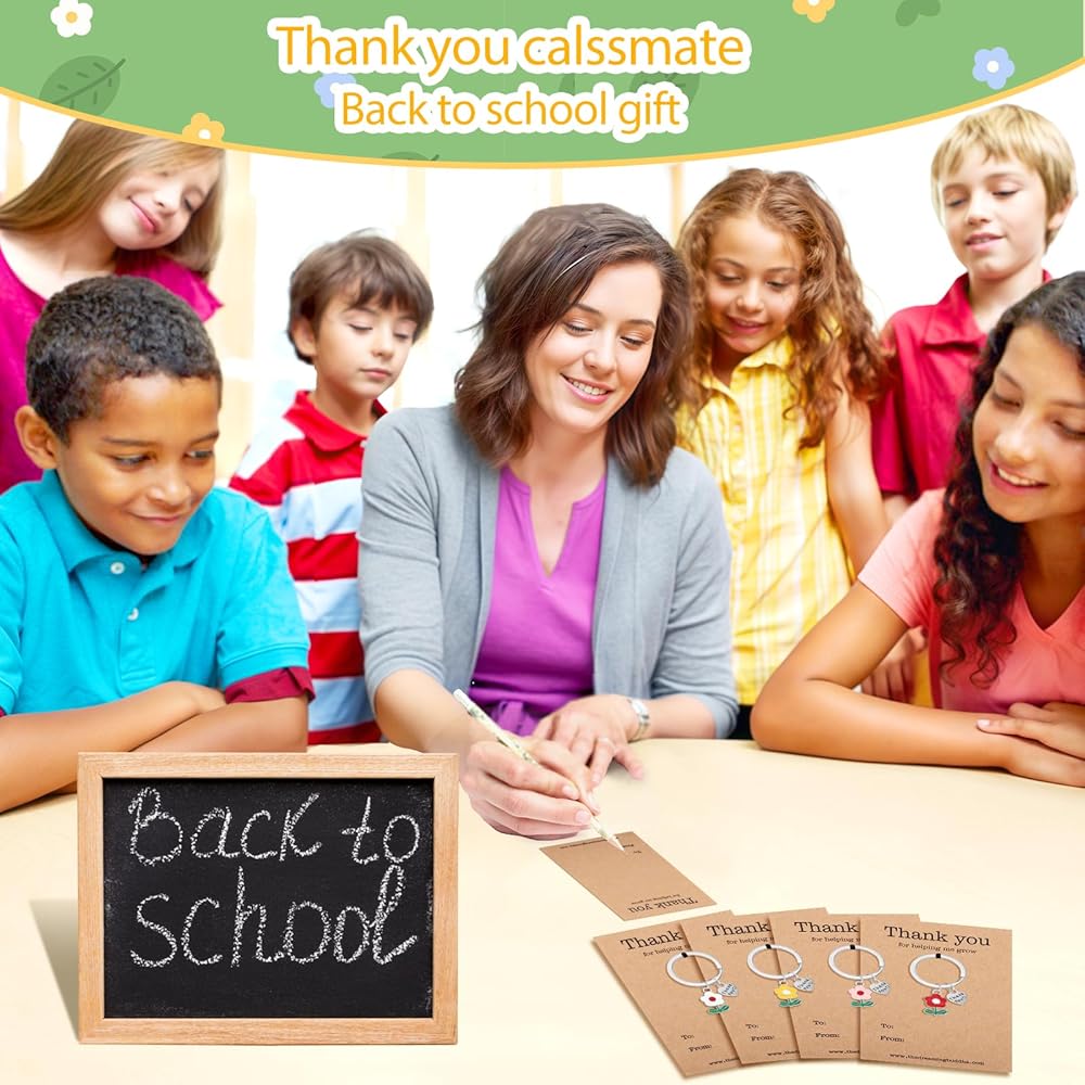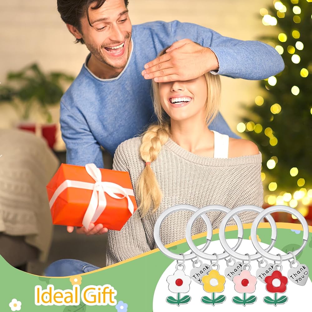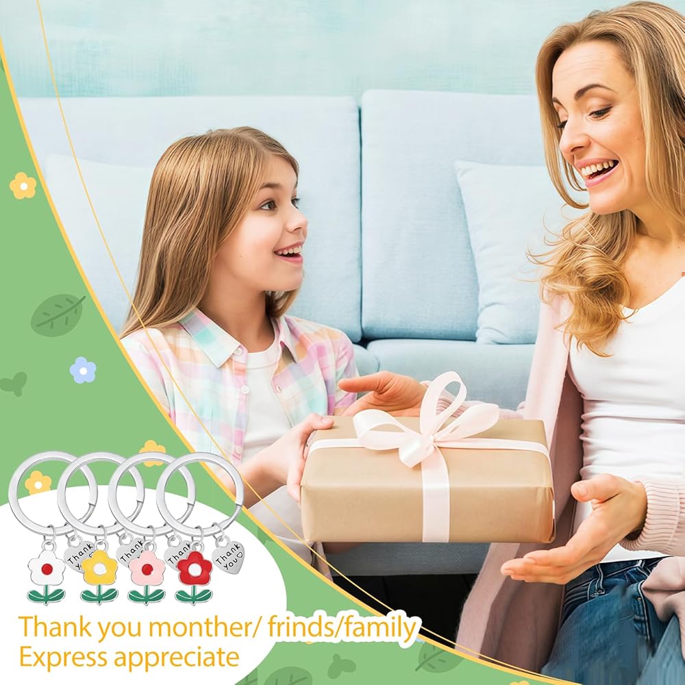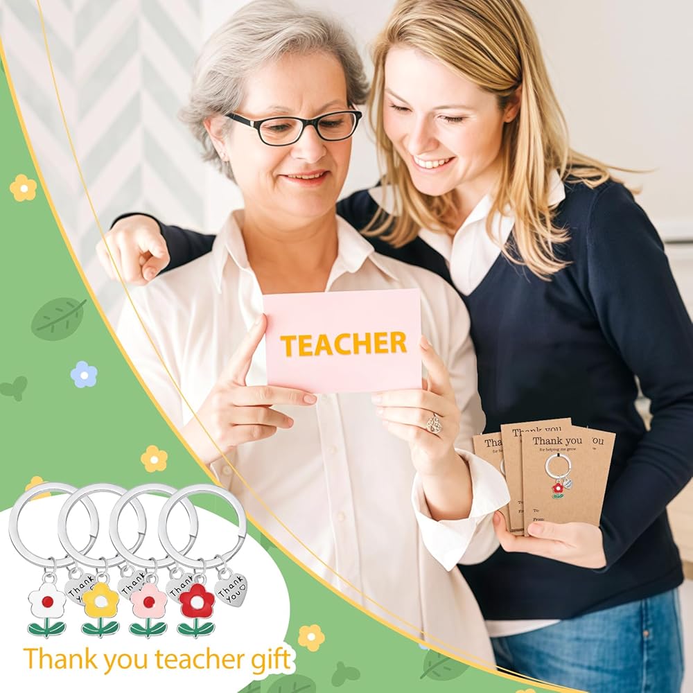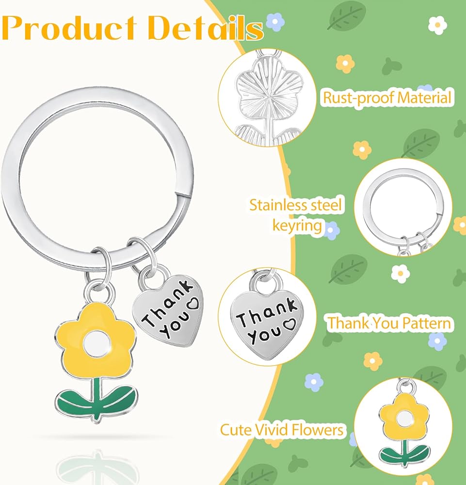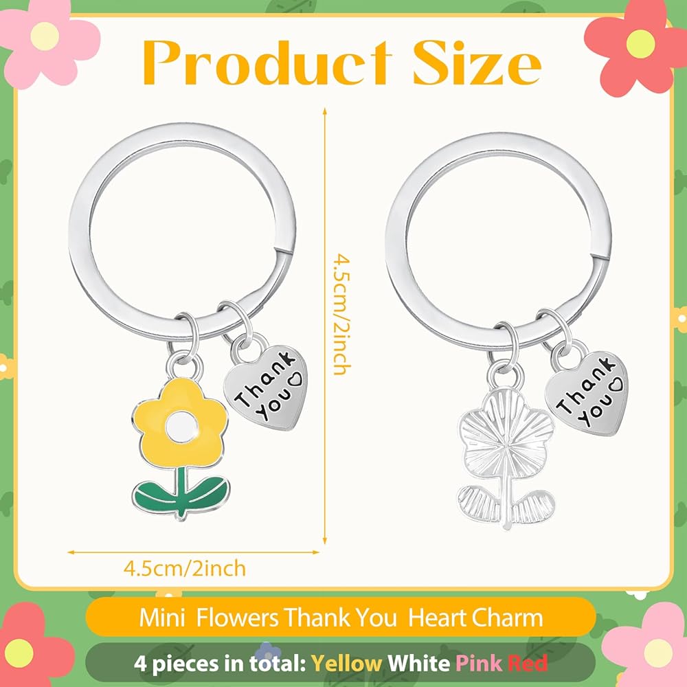 Size & Quantity: The Teacher Keychain Ring Diameter Measures 1 Inch in Length, and the Total Length of the Keychain is Approximately 2 Inches. Simple and Exquisite Keychain to Wear Every Day!There have 4 pieces of Thank You flower keychains, good to sends friends and families