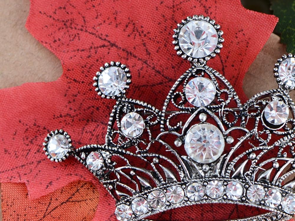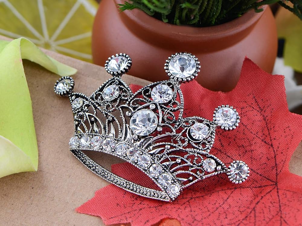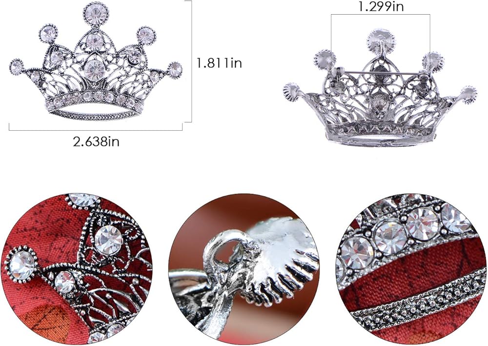 Features - this gorgeous brooch features a royal crown design with sparkly pink/ clear crystal rhinestones, and antique silvery tone metal alloy.