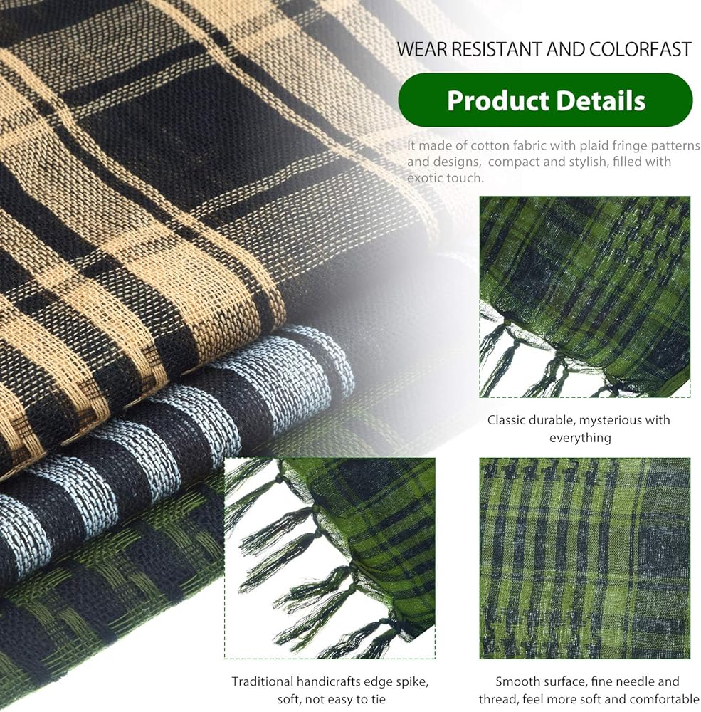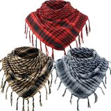 3 Arab plaid fringe scarves fabric shemagh keffiyeh head neck scarf with tassel for tactical outdoor camping accessory unisex