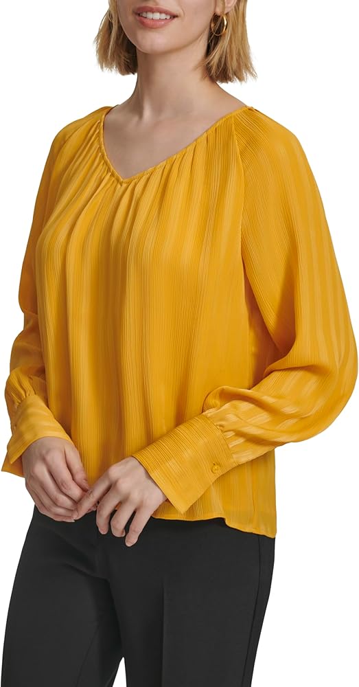 Calvin Klein Women's Long Sleeve V Neck Blouse
