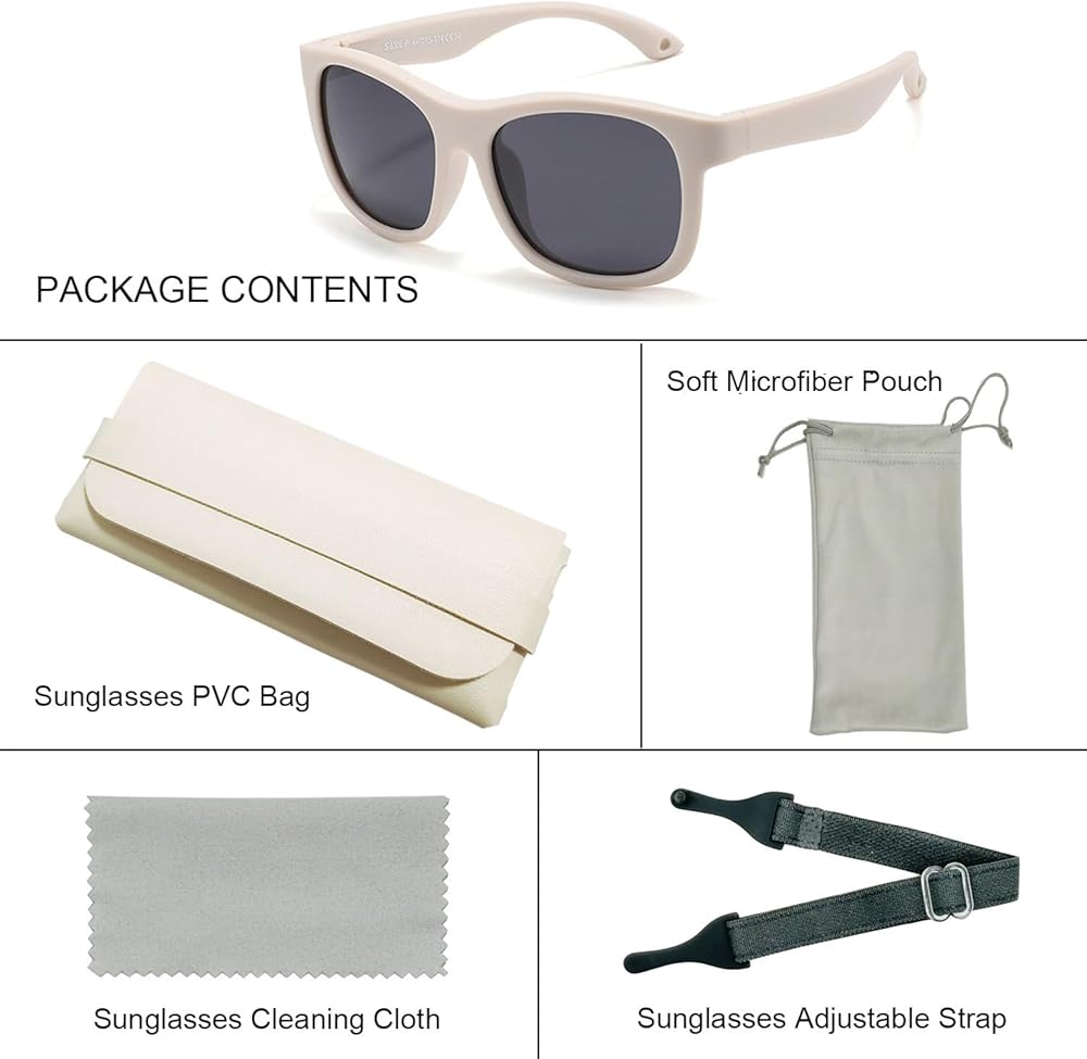🕶PARENTS' PEACE OF MIND- Our baby sunglasses is made of premium TPEE and TAC shatter resistant lenses,flexible and sturdy,non-toxic and food-grade with BPA free for babies safety.