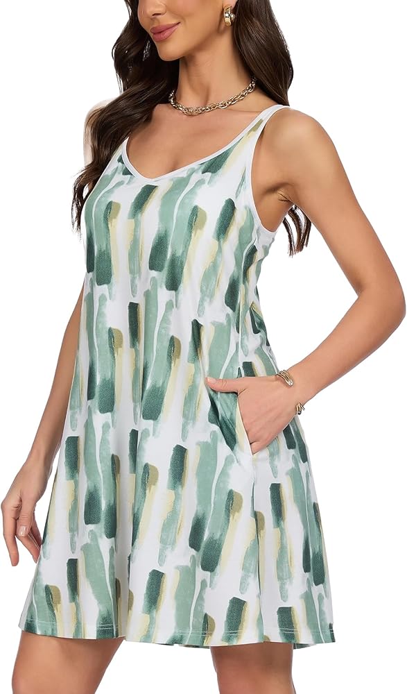 Feature: Summer Dresses for women comes with pockets, round neck casual style,sleeveless,two side pockets which were deep enough to put into cards or lipsticks,Boho style, Swing Hem, sundresses;The bright Colorful print looks shine in summer