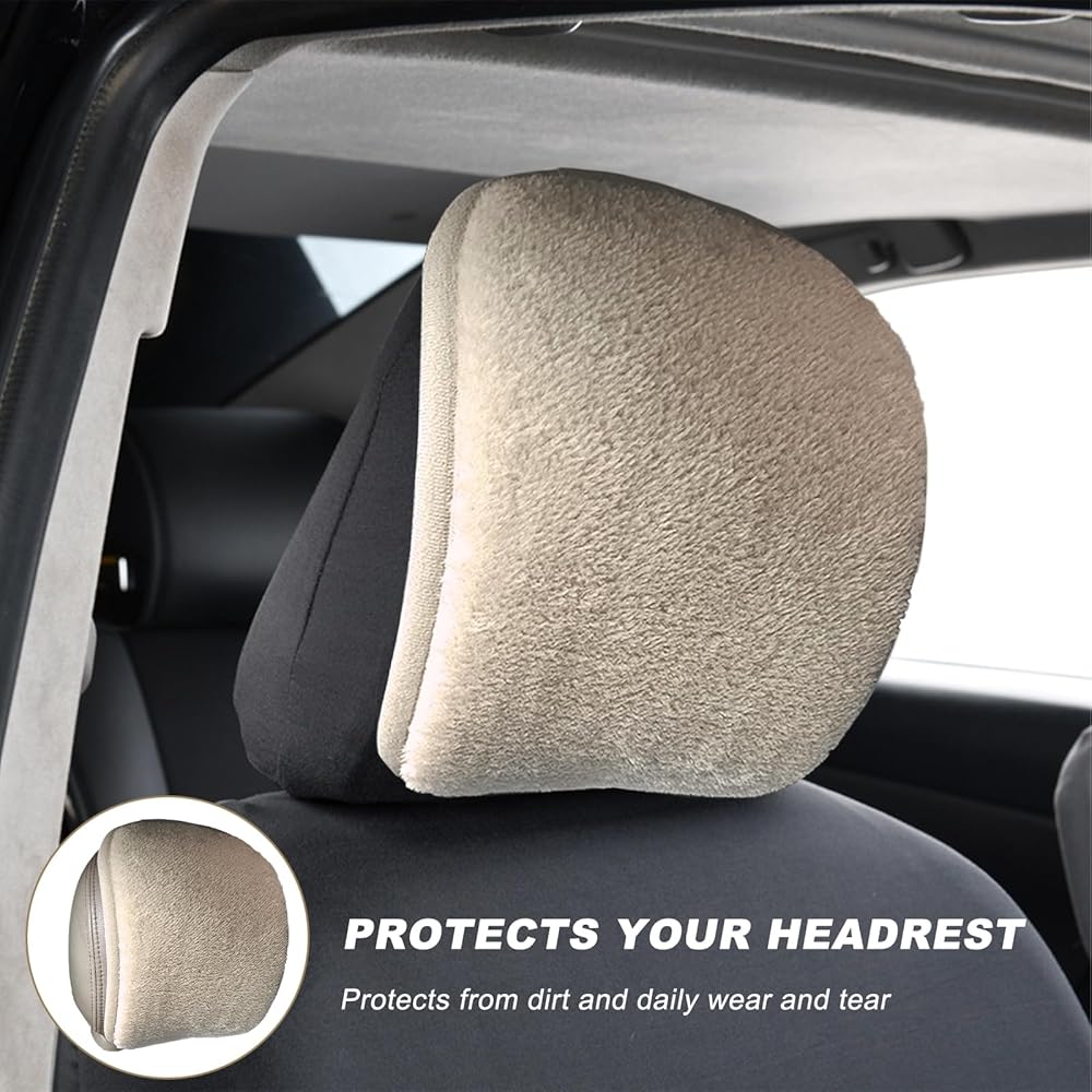 2PCS Car Seat Headrest Cover, Breathable Flexible Auto Head Rest Cover Winter Cozy Pad with Elastic Straps Buckle, Dustproof Headrest Protector Universal Fit to Car Truck SUV (Beige, Plush)