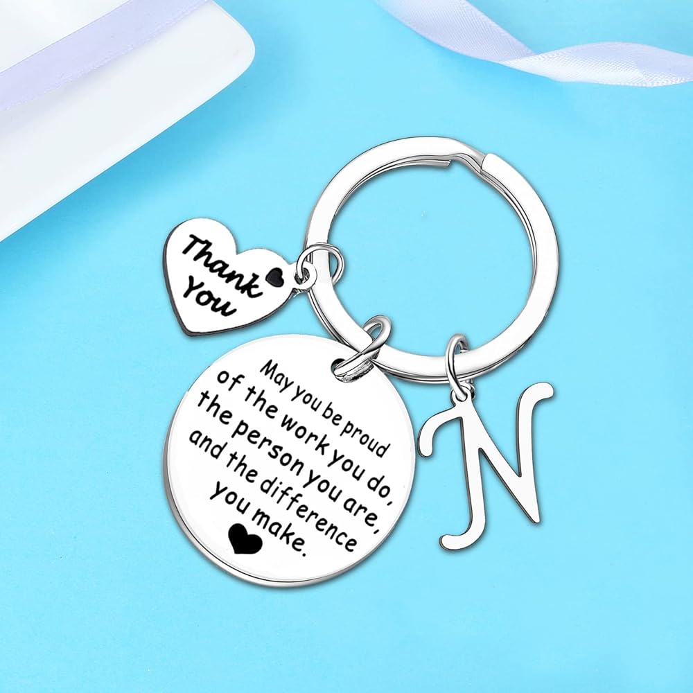 Initial Thank You Gifts For Women Men Keychain for Coworker Boss Teacher Leaving Going Away Farewell Retirement Gift