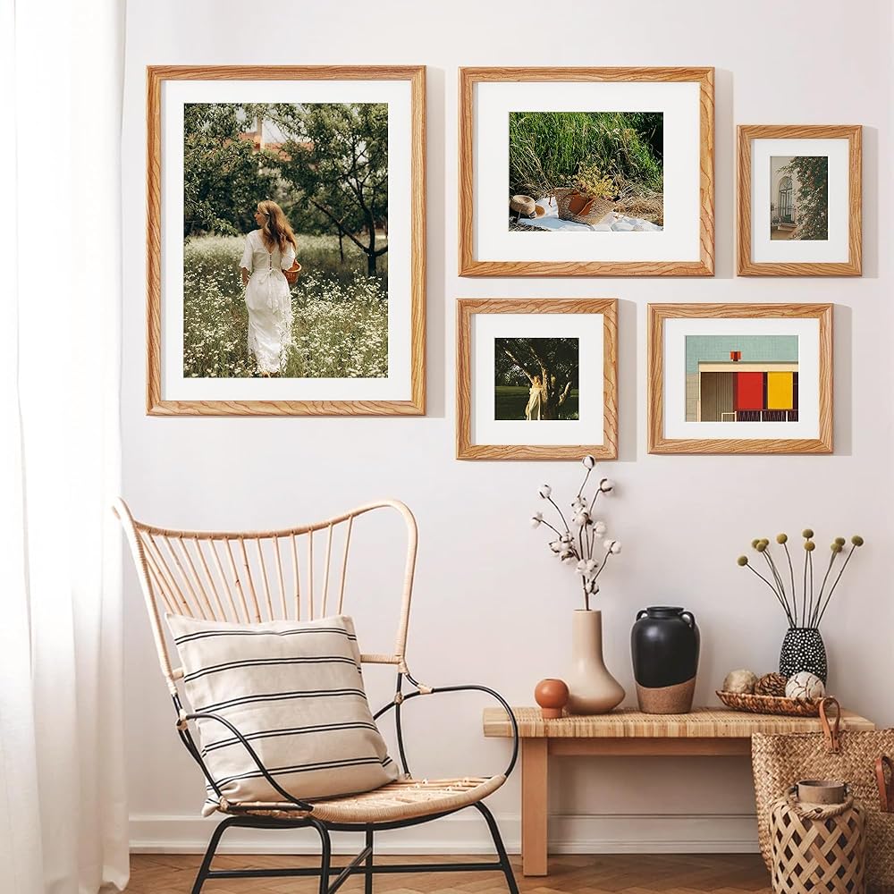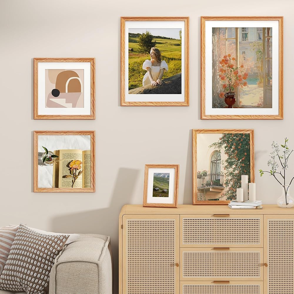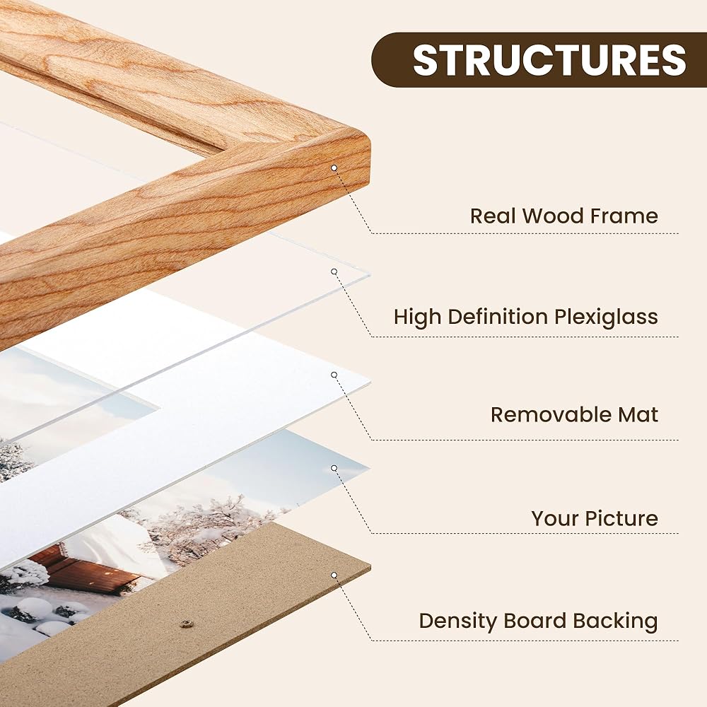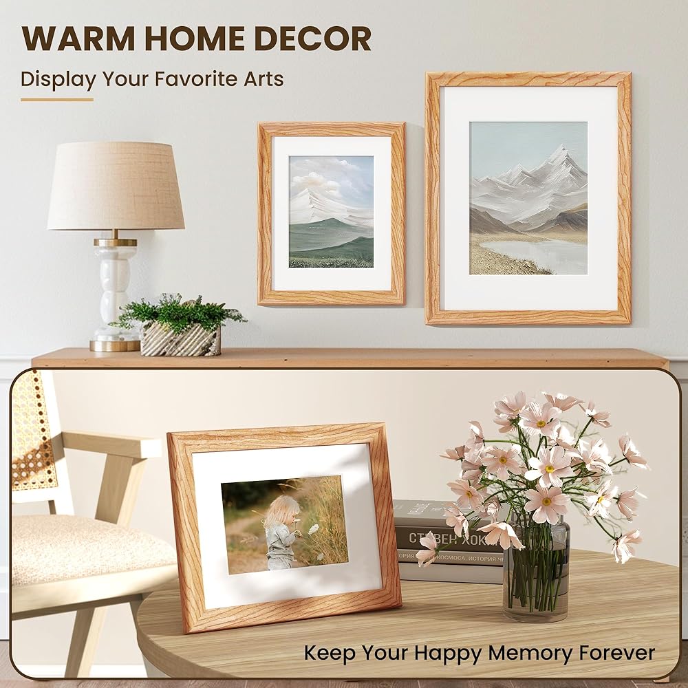 100% SOLID WOOD: The picture frame with mat is made of high quality pine wood with waterproof bark, durable and lightweight, it can be used in children's rooms in addition to living rooms, bedrooms, galleries and other places with high safety.