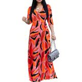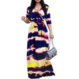 Design:Unique plus size long dress design/Fashion wrap V-tie/high waist/loose fitting women's long dress.Flowy hem makes you look more sexy