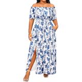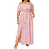 Design: This simple yet fashionable dress features an off the shoulder design and a split hem for a dynamic feel. The smocked waist design not only ensures comfort but also creates a slender waistline. Whether you have a small or large waist, this dress is suitable for you. The puff sleeve design helps to cover the upper arms, making them appear slimmer