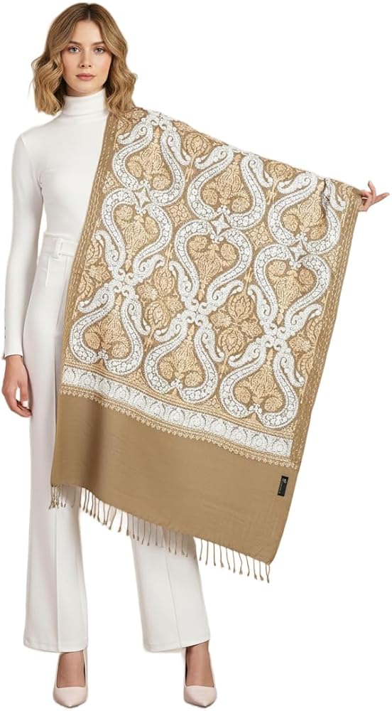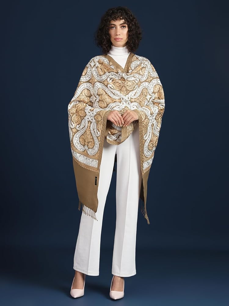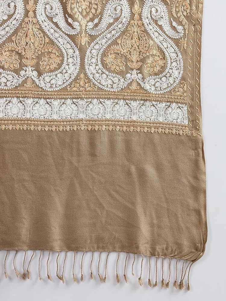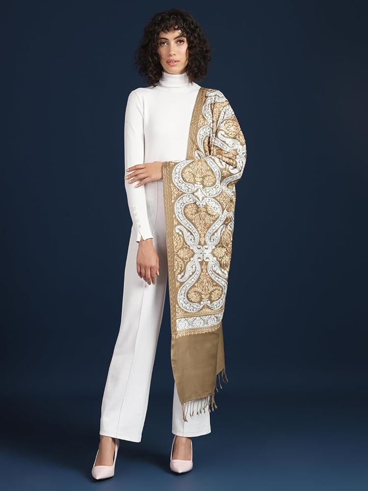 Zamour Indian Embroidery Stole Scarf Wrap, Indo Western Patterns, Warm Full Size Wrap with Aari Nalki Embroidery 30x80 inches