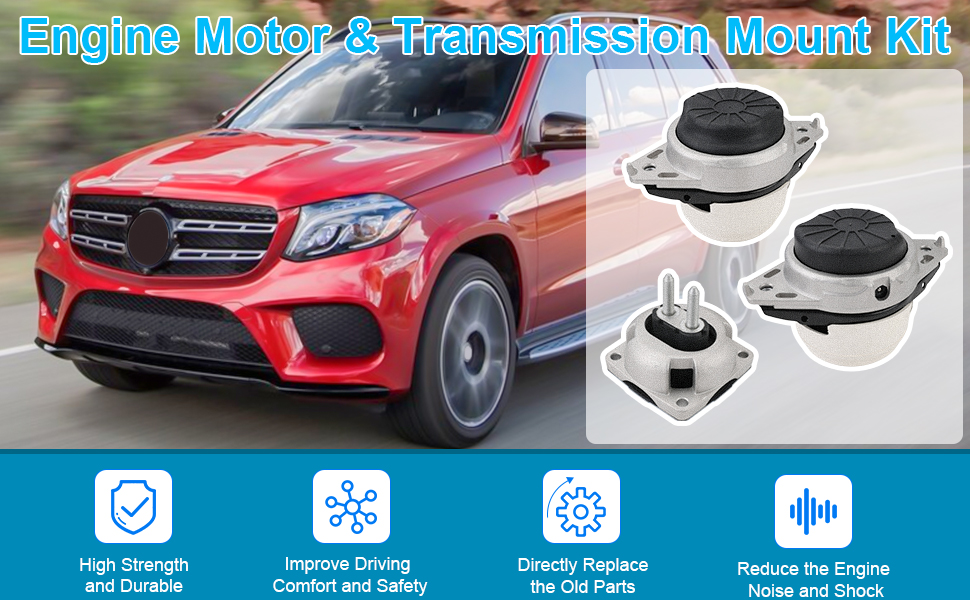 Benefits of Replacing Broken Engine Mounts: Reduce the engine noise and shock. Protect the engine and prolong its service life. Improve your driving comfort, smoothness and driving safety.