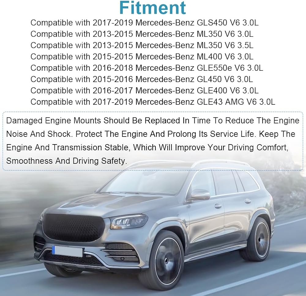 Applicable Car Models: JDMON Engine motor mount compatible with 2017-2019 Mercedes-Benz GLS450 V6 3.0L, compatible with 2013-2015 Mercedes-Benz ML350 V6 3.0L, For more models, please refer to the product description