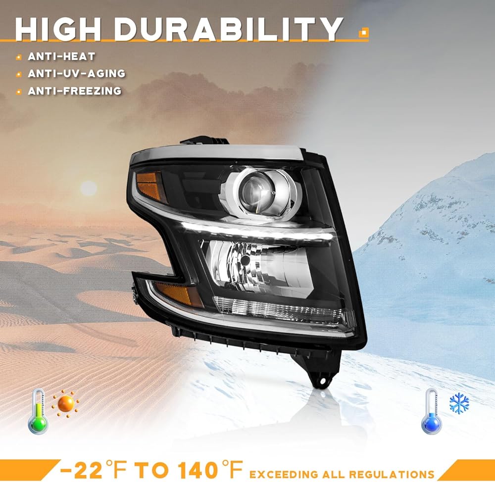 𝐎𝐄𝐌# 23490005, 23490006: Get a 100% match for your vehicle: This replacement is ideal for 𝟐𝟎𝟏𝟓-𝟐𝟎𝟐𝟎 𝐂𝐡𝐞𝐯𝐲 𝐓𝐚𝐡𝐨𝐞/𝐒𝐮𝐛𝐮𝐫𝐛𝐚𝐧, 𝟐𝟎𝟏𝟔-𝟐𝟎𝟏𝟗 𝐂𝐡𝐞𝐯𝐲 𝐒𝐮𝐛𝐮𝐫𝐛𝐚𝐧 𝟑𝟓𝟎𝟎𝐇𝐃 𝐇𝐚𝐥𝐨𝐠𝐞𝐧 𝐓𝐲𝐩𝐞; (𝐅𝐢𝐭𝐬 𝐦𝐨𝐝𝐞𝐥𝐬 𝐰𝐢𝐭𝐡 𝐡𝐚𝐥𝐨𝐠𝐞𝐧 𝐡𝐞𝐚𝐝𝐥𝐢𝐠𝐡𝐭𝐬 𝐨𝐧𝐥𝐲)(𝐍𝐎𝐓 𝐂𝐨𝐦𝐩𝐚𝐭𝐢𝐛𝐥𝐞 𝐰𝐢𝐭𝐡 𝐇𝐈𝐃/𝐗𝐞𝐧𝐨𝐧 𝐇𝐞𝐚𝐝𝐥𝐢𝐠𝐡𝐭𝐬 𝐌𝐨𝐝𝐞𝐥𝐬). Kindly note, bulbs are not included; please use stock bulbs for installation.Ultra-brightening chrome bezel: Get premium plating with durable material