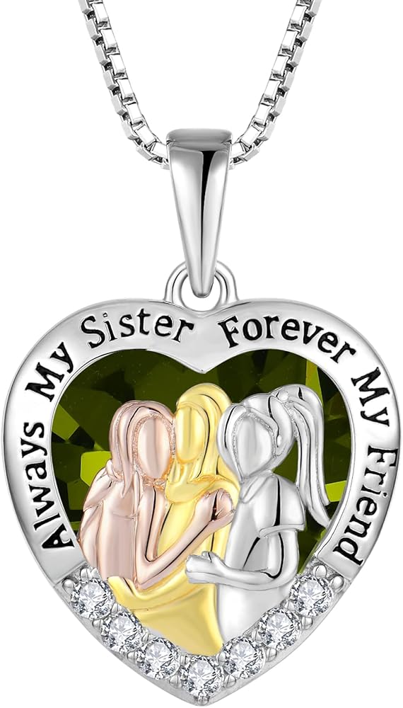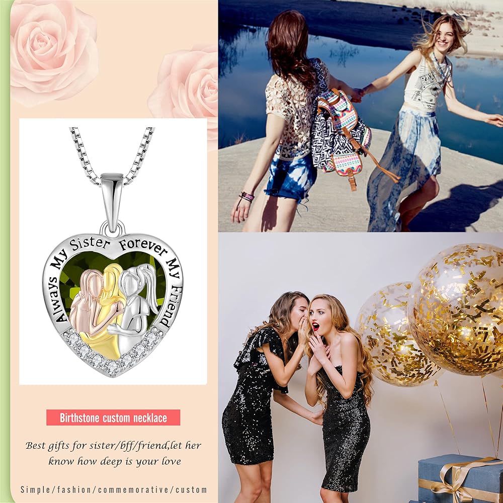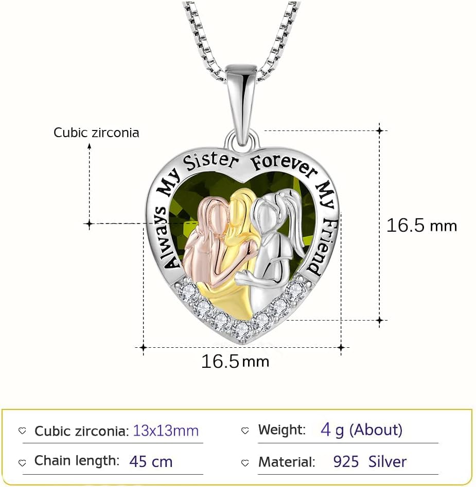 Sister Necklaces for 3 Christmas Birthstone Necklace 925 Sterling Silver 5A Cubic Zirconia Always My Sister Forever My Friend Jewelry for Women Her Birthday Anniversary Mother's Day