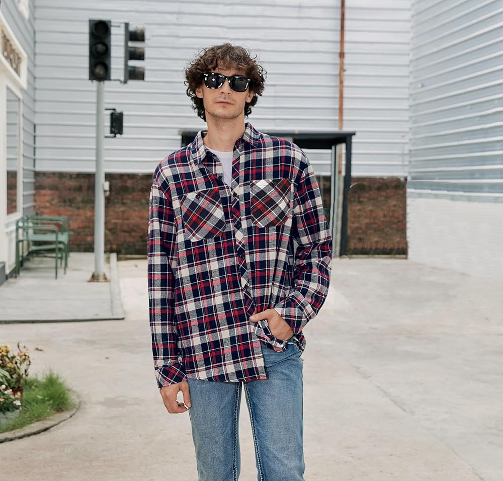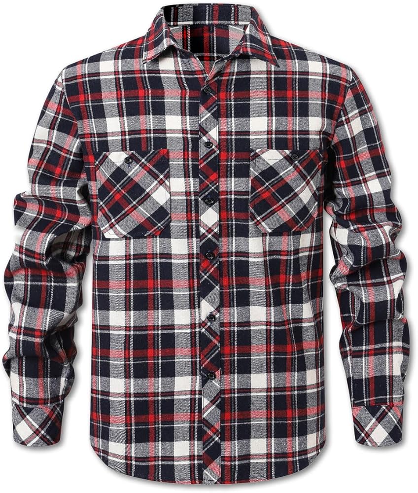 - Mens Casual Shirts Long Sleeve Plaid Flannel Shirt