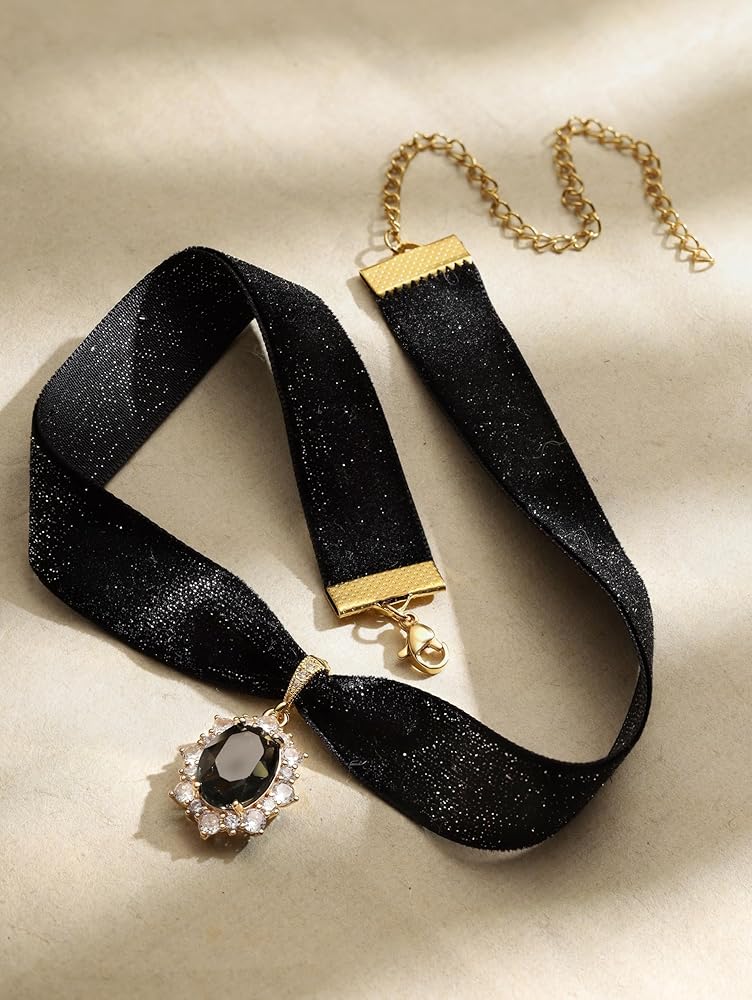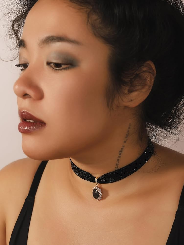GOTHIC GOTH VINTAGE GREEN RHINESTONE VICTORIAN CHOKER NECKLACE: Our Green Velvet Victorian choker goes with most everyday outfits and look great with goth and vintage clothing and can be used as a Halloween or Valentine's Day costume