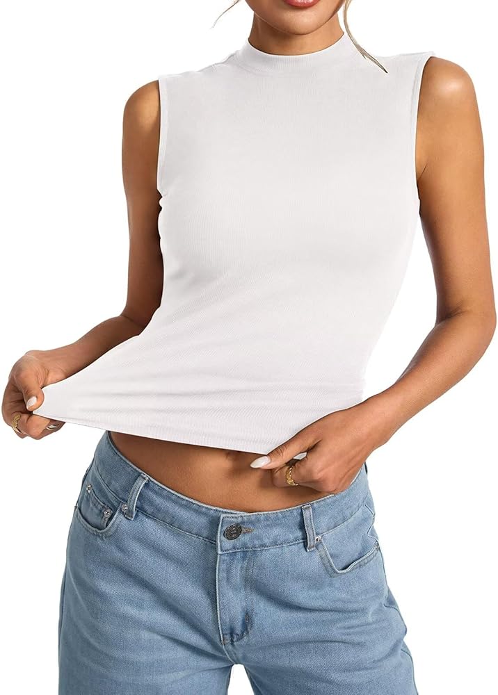 Fitted Turtleneck Shirts: High neck tank tops for women; Sleeveless mock neckline basic tees; Full-length fitted cropped tops; Full coverage back vests. This vintage mock turtleneck tops allow for many looks, from comfortable to chic