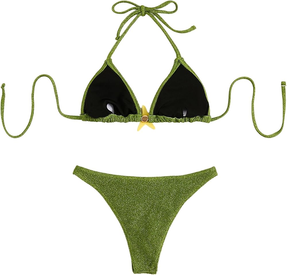 Feature: Womens sexy swimwear, fishtail decor, tie knot, high cut, push up, halter neck, 2 piece set, fashionable and fun style that makes you stand out at the beach or pool