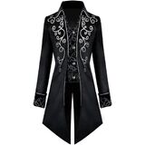 Men's Steampunk Gothic Tailcoat Vampire Costume, Long sleeve, knee length frock coat, lapel collar, side flap pockets with buttons. V neck gentlemen style, This jacket will bring a fashionable touch to your look and will definitely suit all styles and seasons, Character: Medieval King, Prince, Noble, Someone in Middle Ages, vintage tailcoat is suitable for adult men or teen boys