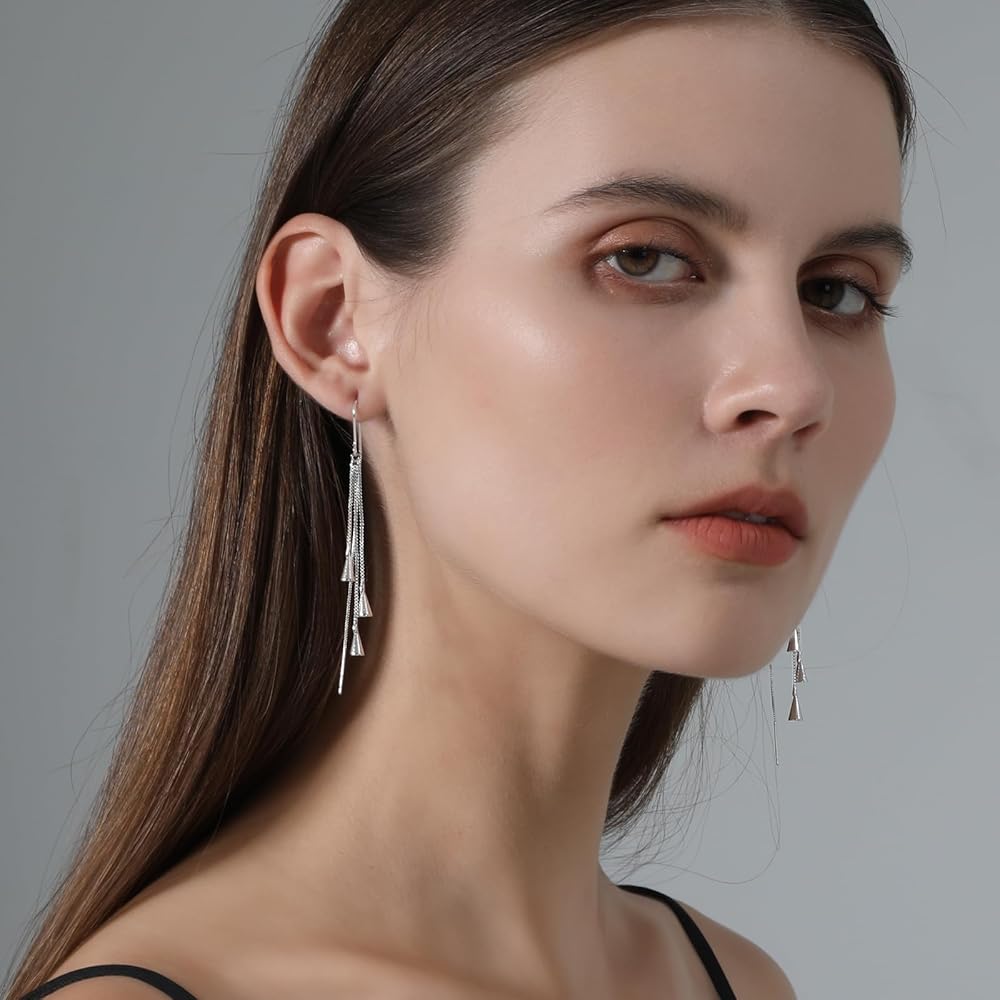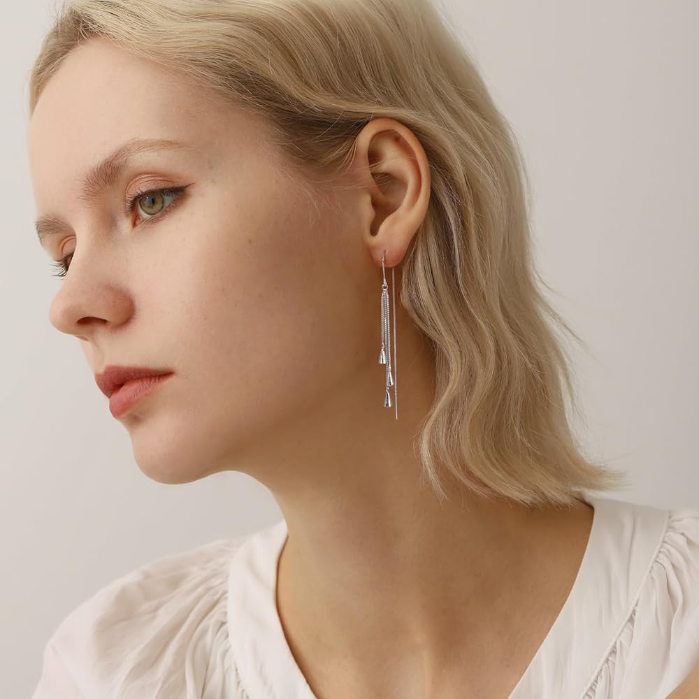 [Classic Design]: The threader earring is designed in chain earrings dangling ,these dangle earrings are suitable for all kinds of occasion and outfits.Wearing these dainty gold dangle earrings make you look elegant and charming.