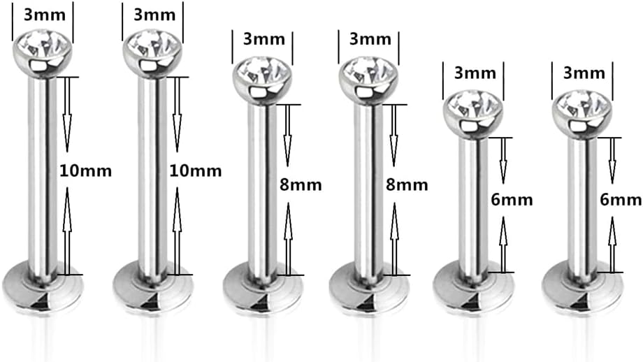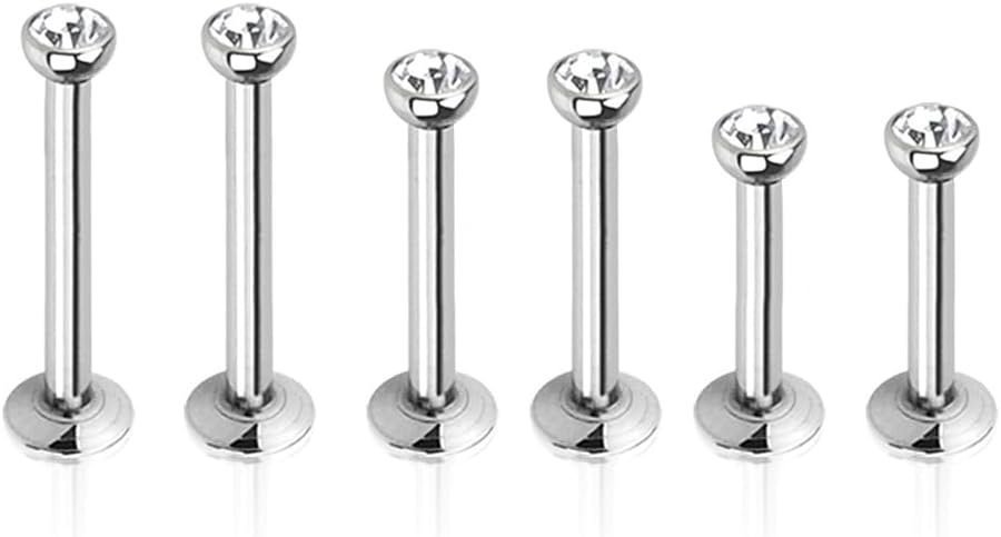 GOOD PRICE PIERCING: 6pc multi size cz crystal labret