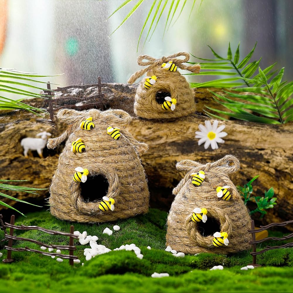 Lovely Beehive Decor: our jute bee hive decor is decorated with bows on the top and some buzzing bee designs on the body, the lifelike, delicate design of the bee is very eye catching, fresh, and lovely, bringing you a happy mood, will add sweetness and warm feeling to your room