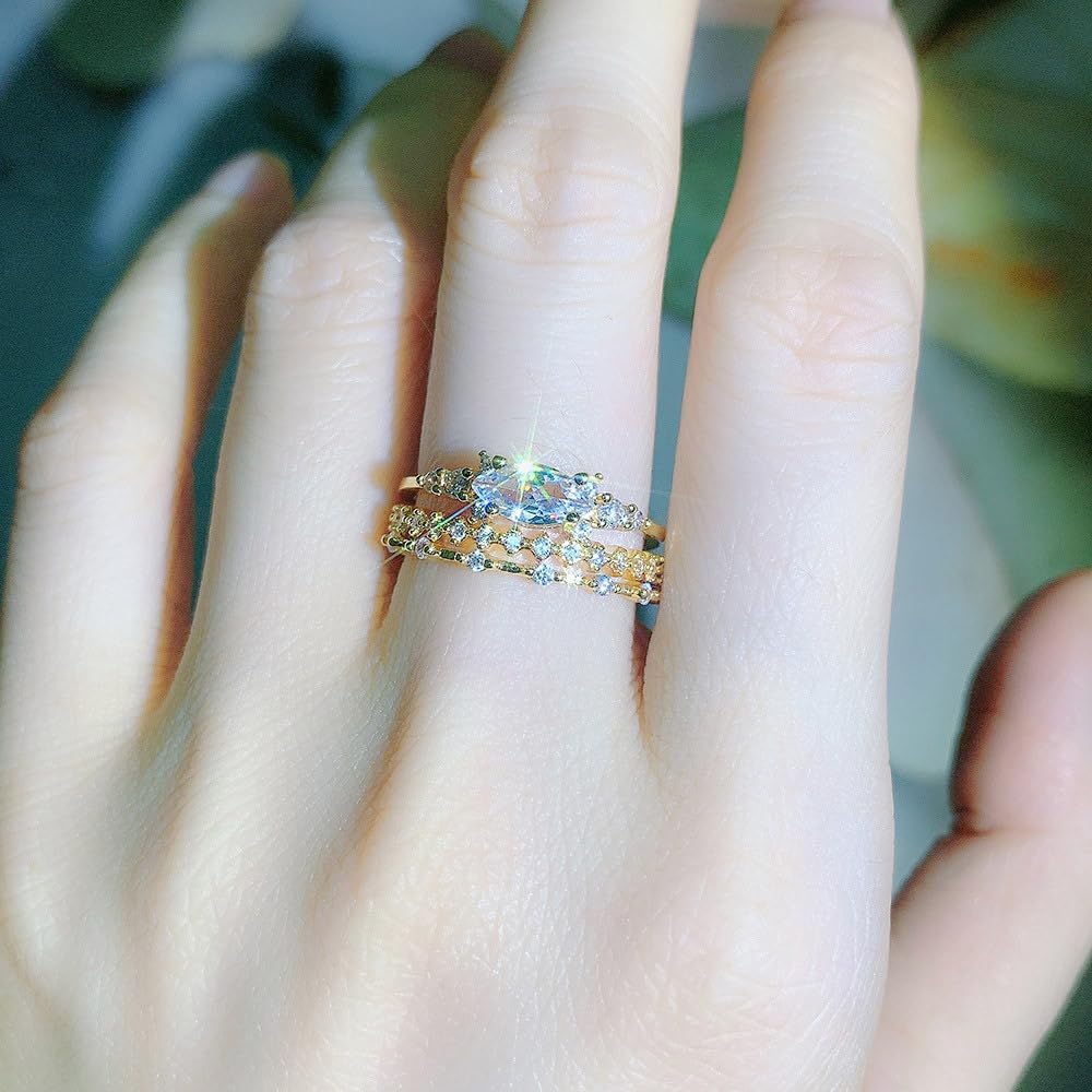 Stacking Rings for Women: Each set of rings contains unique diamond elements, which are very shiny and fashion-designed. Crafted from high quality copper, plated with 14k gold and set with cubic zirconia stones for long-lasting colour,Besides, there are simple gold ring in each set which are suitable for daily wear. These rings can be worn separately or stacked, and they will make you more attractive and impressive.