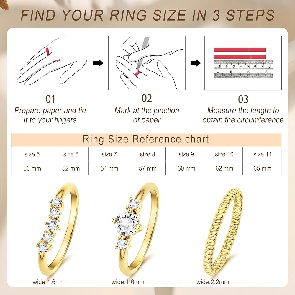 [GOLD-PLATED RING] This ring set for women is made of 14k real gold-plated brass, and there is no need to worry about the gold ring rusting or irritating the skin. High-quality gold plating can always remain the same, the color will not fade, will give you a better wearing experience.