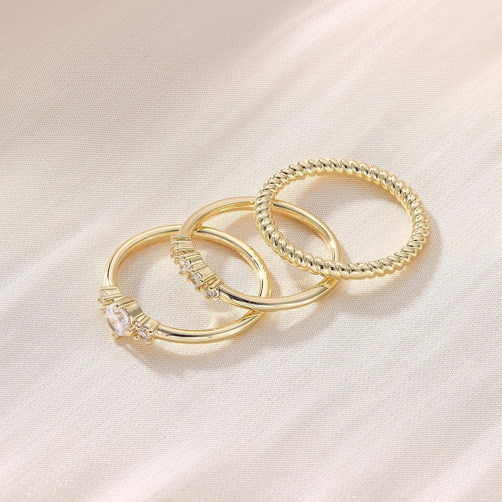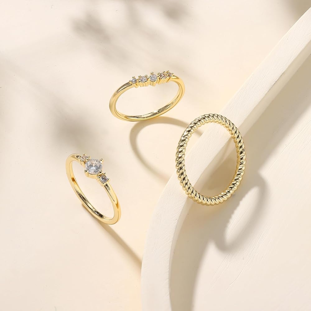 [GOLD RING SET] You can get 3 different styles of stackable rings for women, including two delicate cubic zirconia rings and a cute twist ring. Each thin gold ring contains unique design elements that are very shiny and stylish in design, making you more elegant.