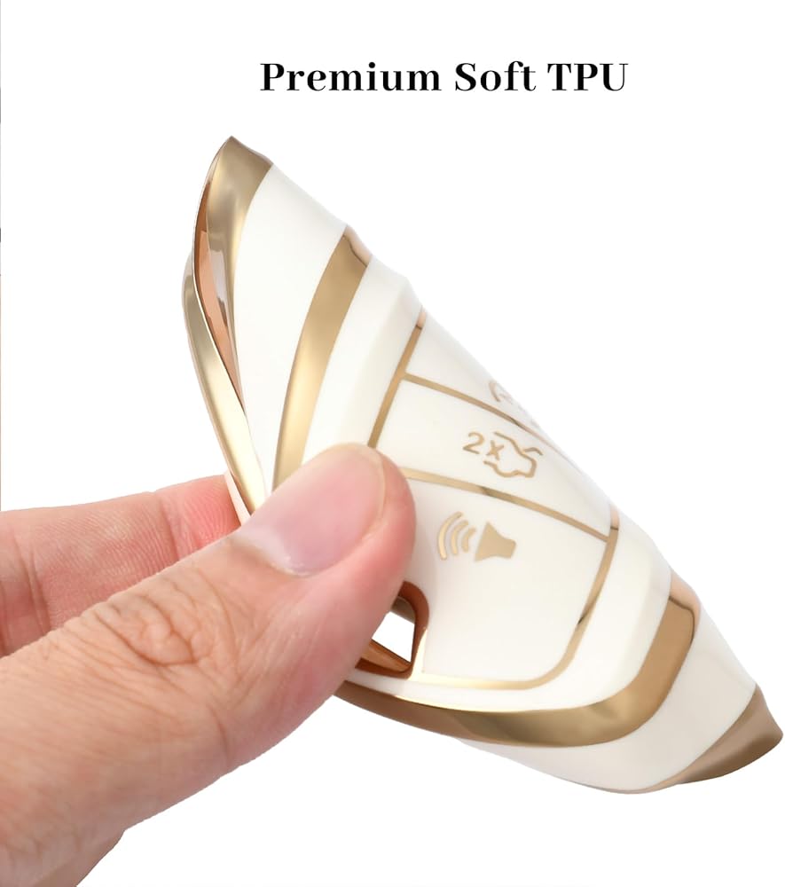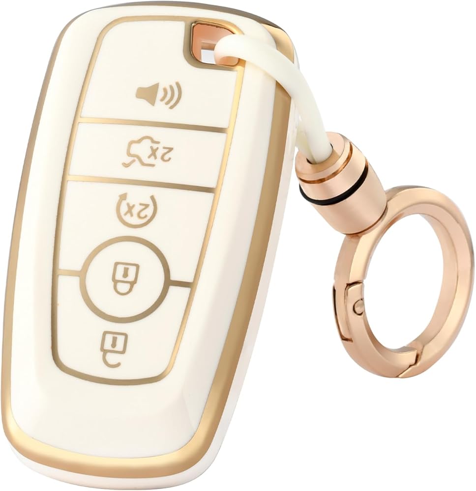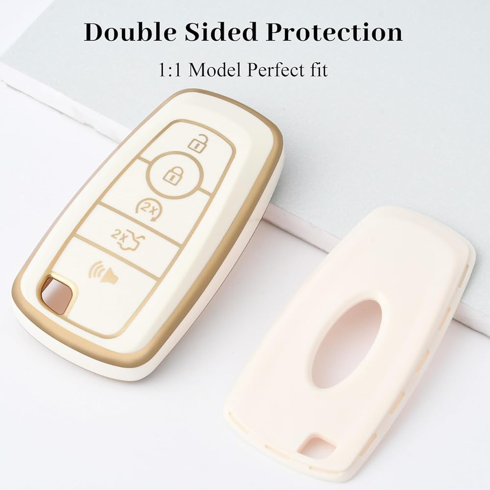 for Ford Key Fob Cover with Keychain, Soft TPU Full Protection Fob Compatible with Explorer Fusion Escape Edge Expedition F150 F250 F350 F450 F550 Maverick Mustang 5 Buttons, Gold White