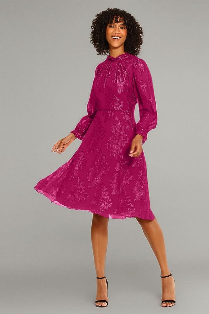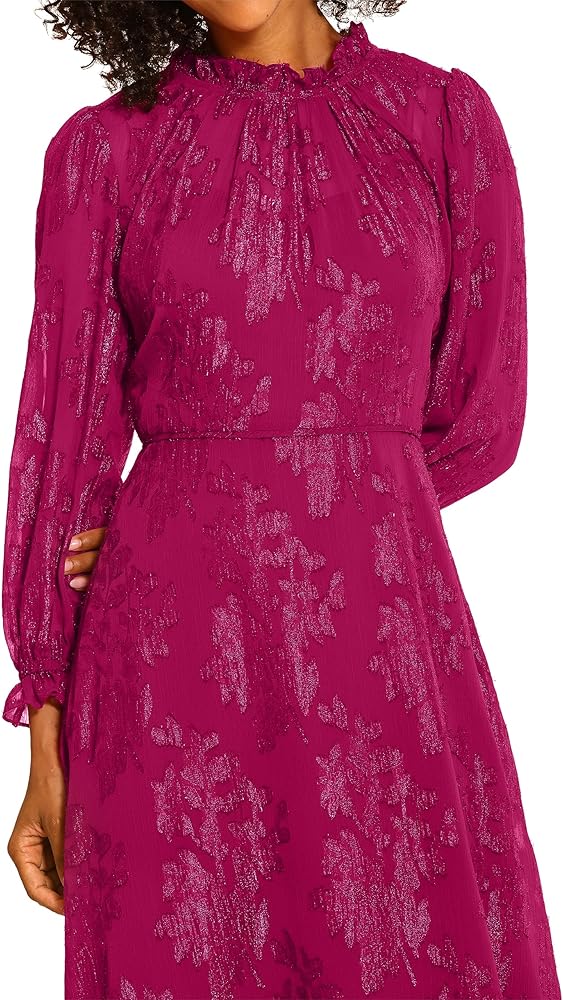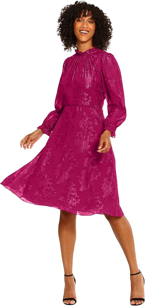 Maggy London Women's Dresses Long Sleeve Ruffle Neck Dress
