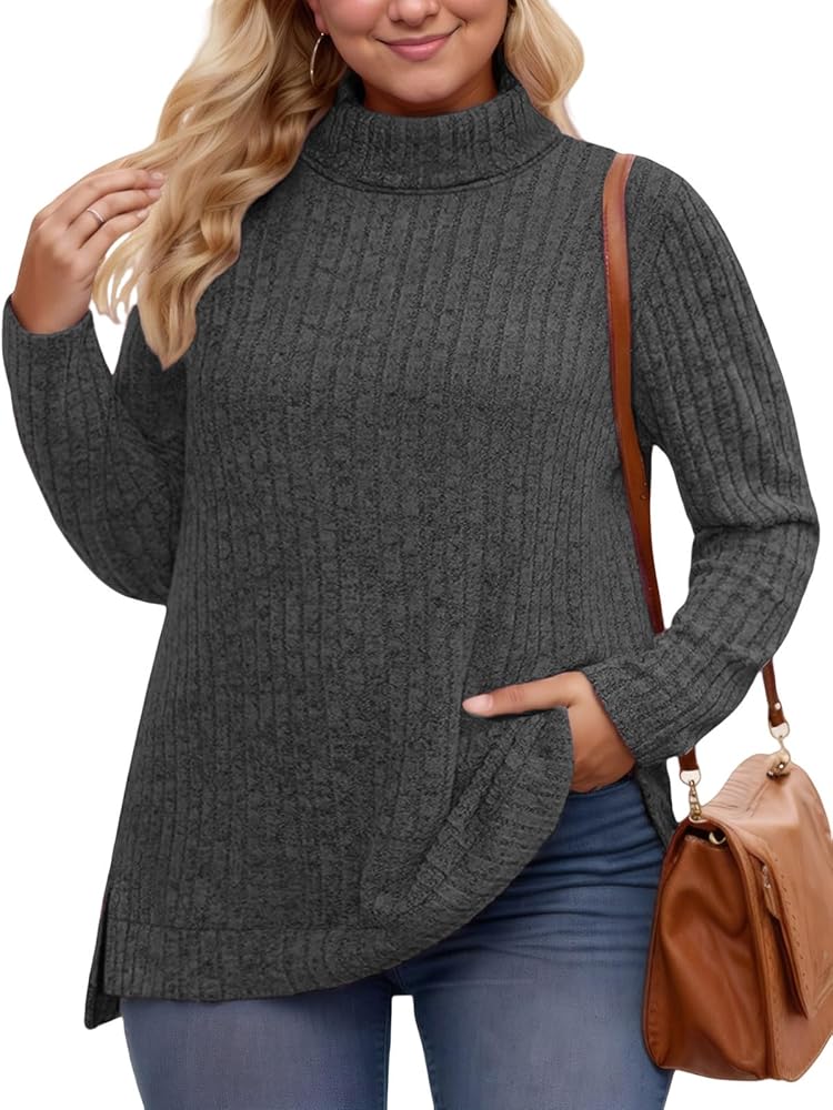 Women's plus size long sleeve tops feature chic turtle neck for trendy look and nice warm, cute side split high low hem for dressy look and flattering fit, casual, stylish and full of femininity