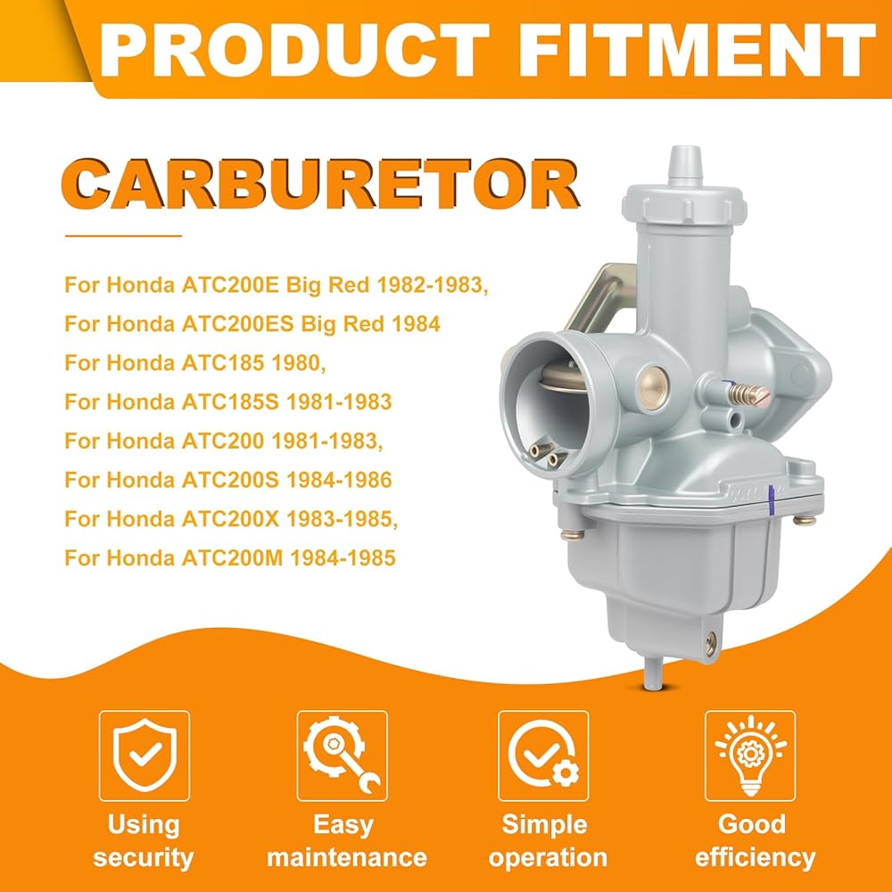 Triumilynn Carburetor Replacement for Honda ATC185 ATC185S ATC200 ATC200E ATC200ES Big Red ATC200S ATC200M Carb Carburateur with Fuel Line Filter