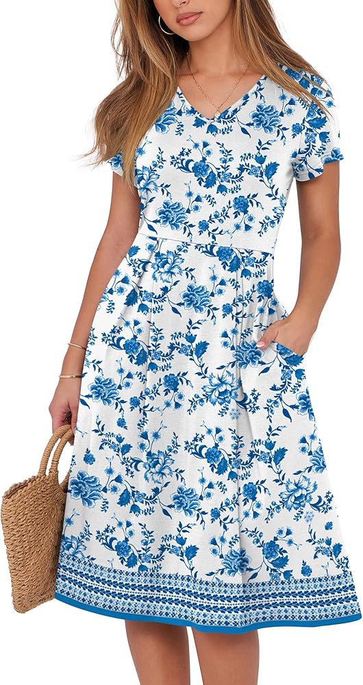 - Features - Women's summer midi dress, v neck, short sleeve.This women's casual dress perfect for daily wear, work, office, beach.