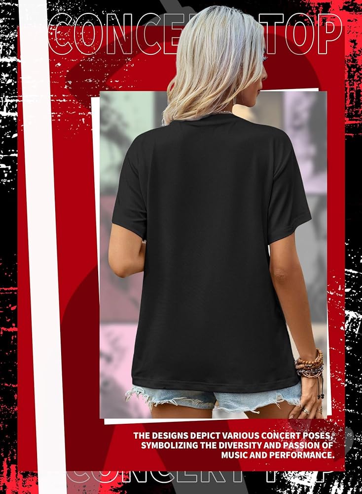 🎀 Easy to Pair: This versatile fan lover short sleeve graphic tee pairs effortlessly with jeans, shorts, skirts, or leggings, creating different styles. Whether you prefer a casual look, a sporty vibe, or a trendy outfit, this concert tshirts meets your styling needs, surprising you every time you wear it.